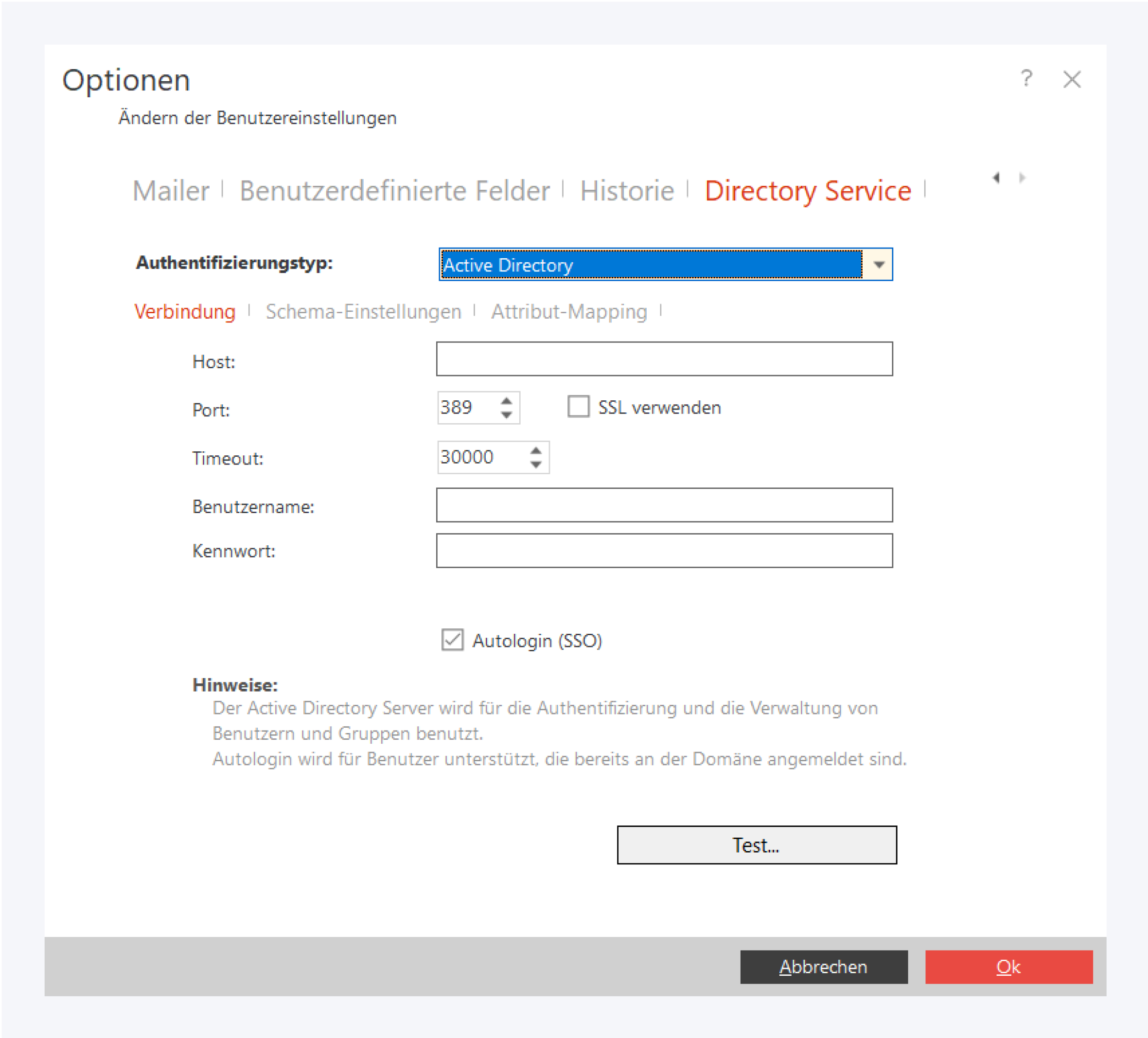 Für Active Directory kann der Autologin (SSO) verwendet werden.