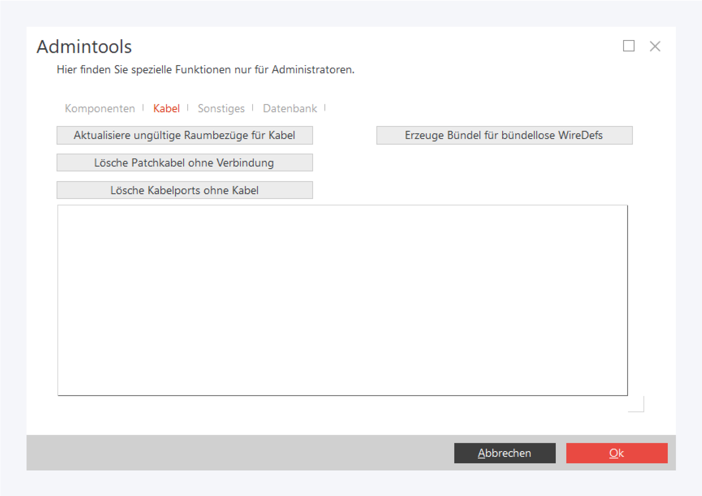Hier finden Sie vielfältige Funktionen zur schnellen Fehlerbereinigung, wie Datenbankkorrekturen oder das Erzeugen fehlender interner Verbindungen passiver Geräte.