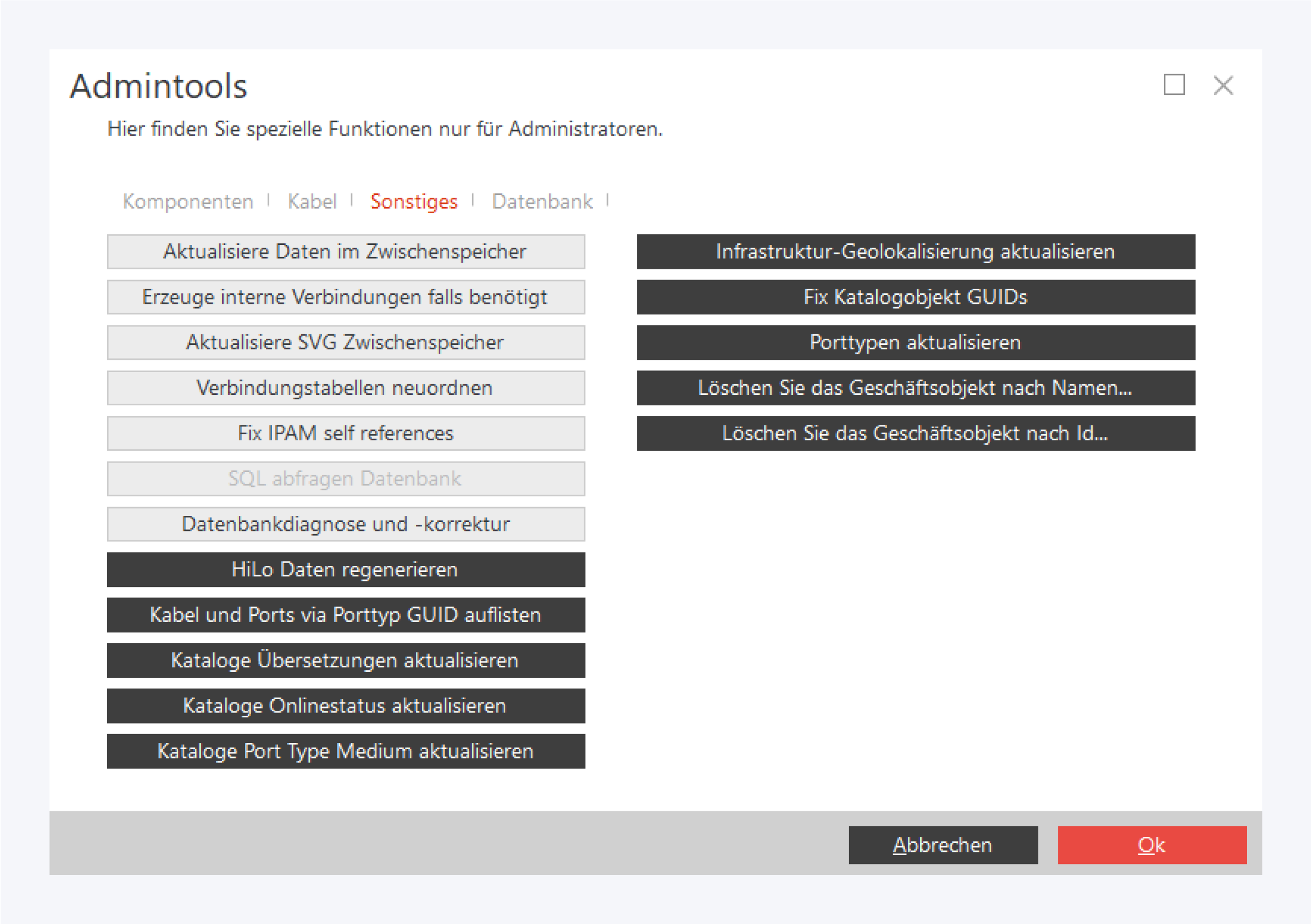 Grundsätzlich wird empfohlen, Rücksprache mit dem Support zu halten, bevor Sie auf die Admintools zurückgreifen.