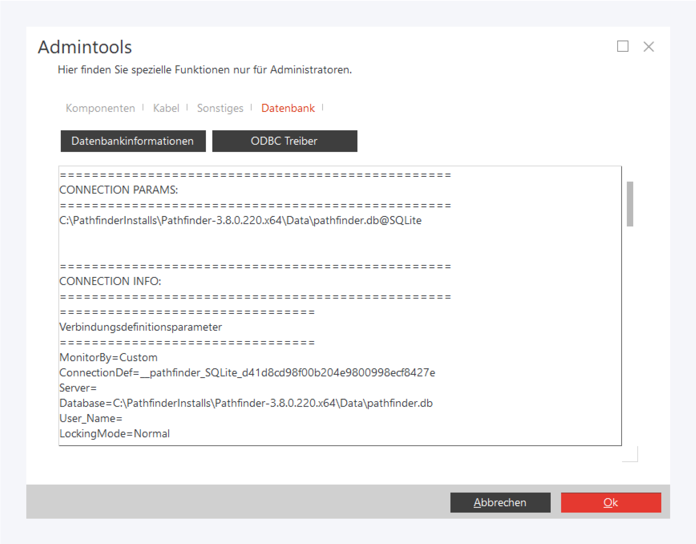 Sehen Sie detaillierte Informationen zur Datenbankverbindung ein.