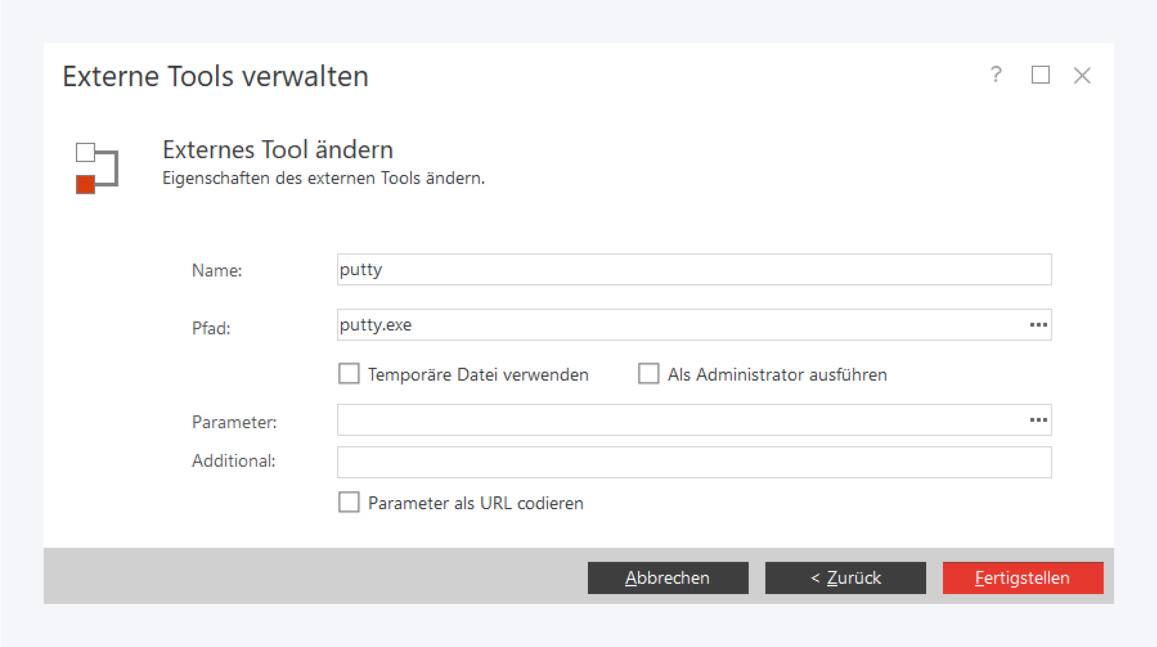 Für externe Tools stehen die folgenden Eigenschaften zur Verfügung: