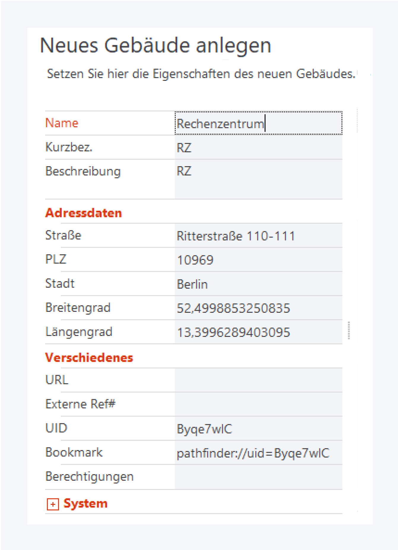 Geben Sie die Daten des neuen Gebäudes an und klicken Sie auf OK, um den Vorgang abzuschließen.