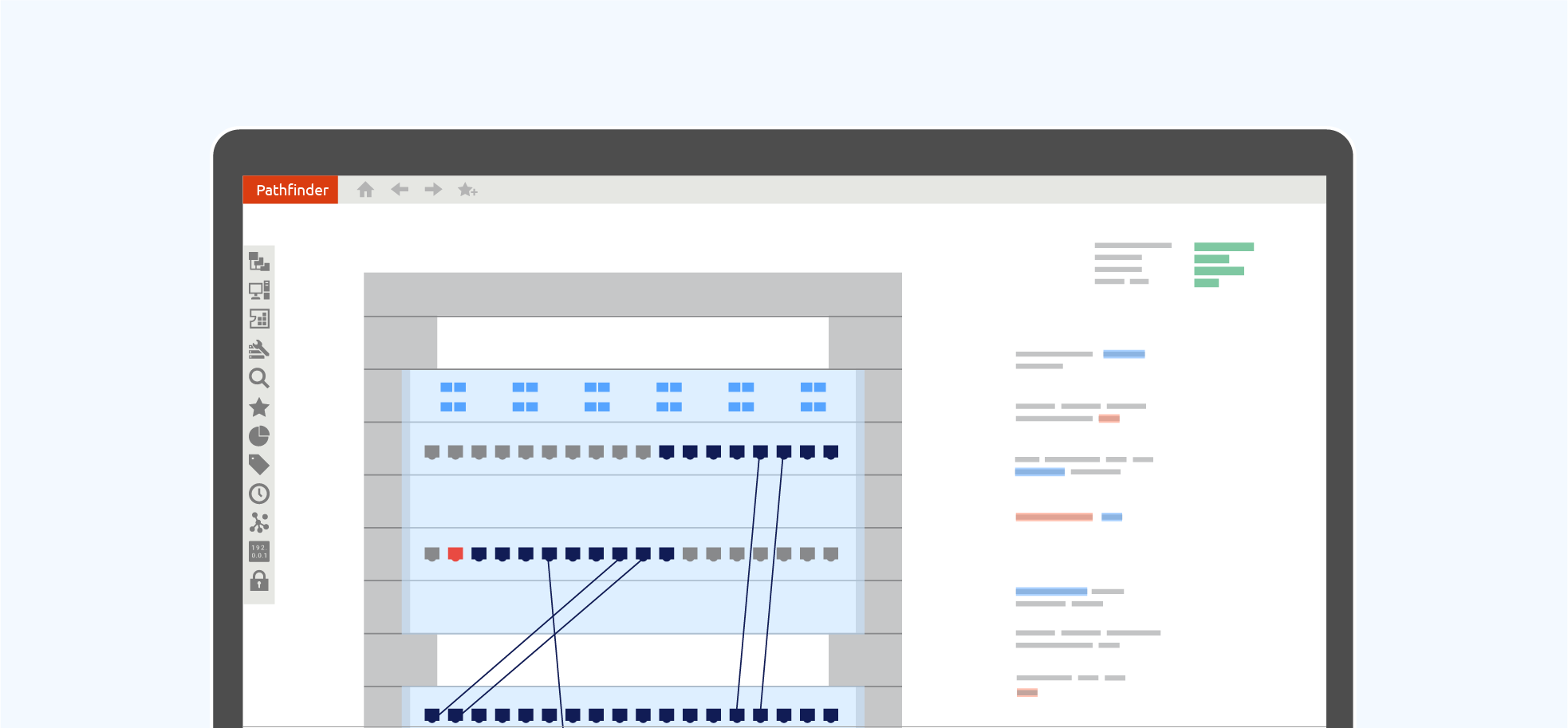 Pathfinder bietet die Möglichkeit, eine verschachtelte Infrastruktur zu definieren, und so die realen Verhältnisse präzise nachzubilden. Erstellen Sie Standorte, lernen Sie die Visualisierungsmöglichkeiten kennen, platzieren Sie Schränke und Geräte und vieles mehr.