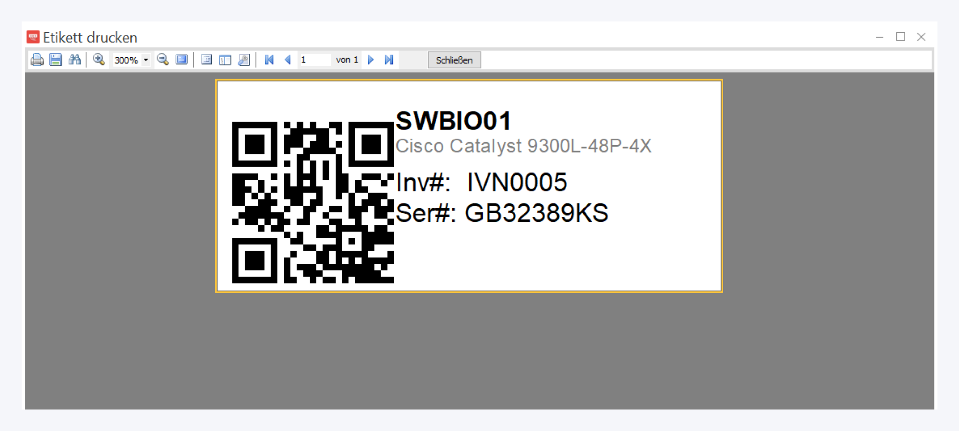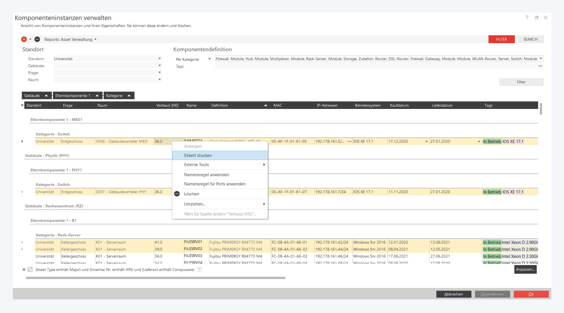 Sie können jetzt zu einzelnen Geräten oder Kabeln ein Etikettenlabel erzeugen und dann ausdrucken.