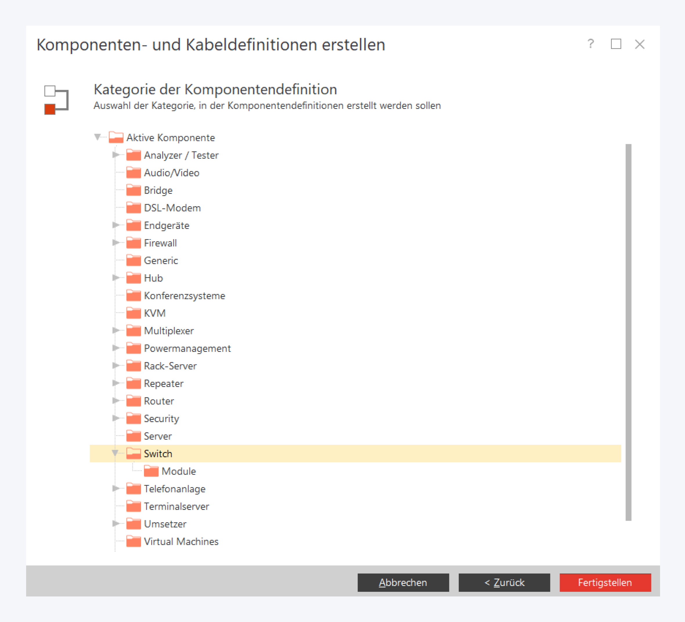 Sie können aktive Komponenten, wie Router, Switche oder Server erstellen.