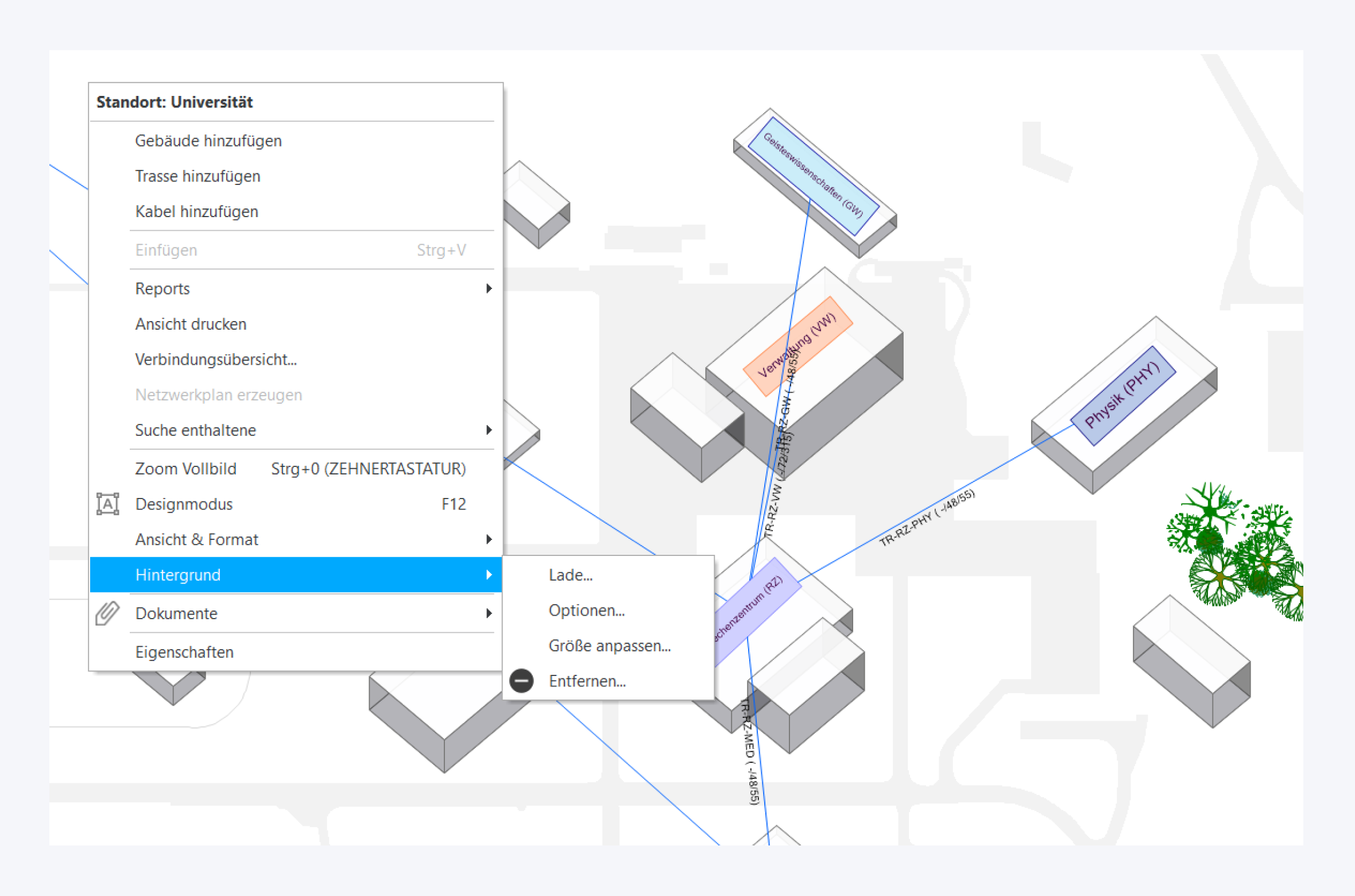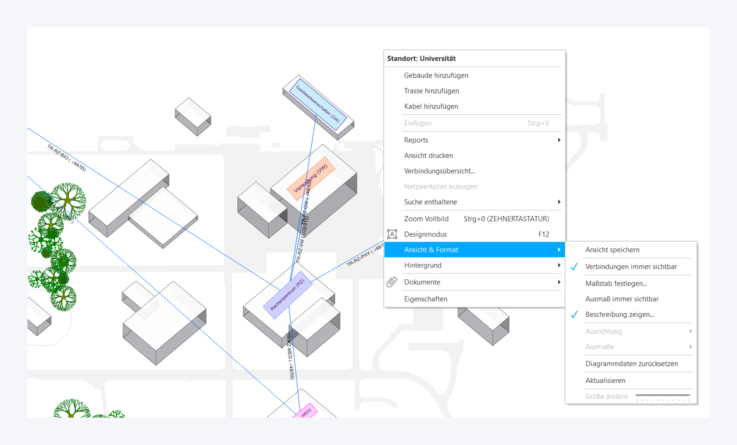 Entscheiden Sie, ob Kabel und Trassen immer angezeigt werden sollen.