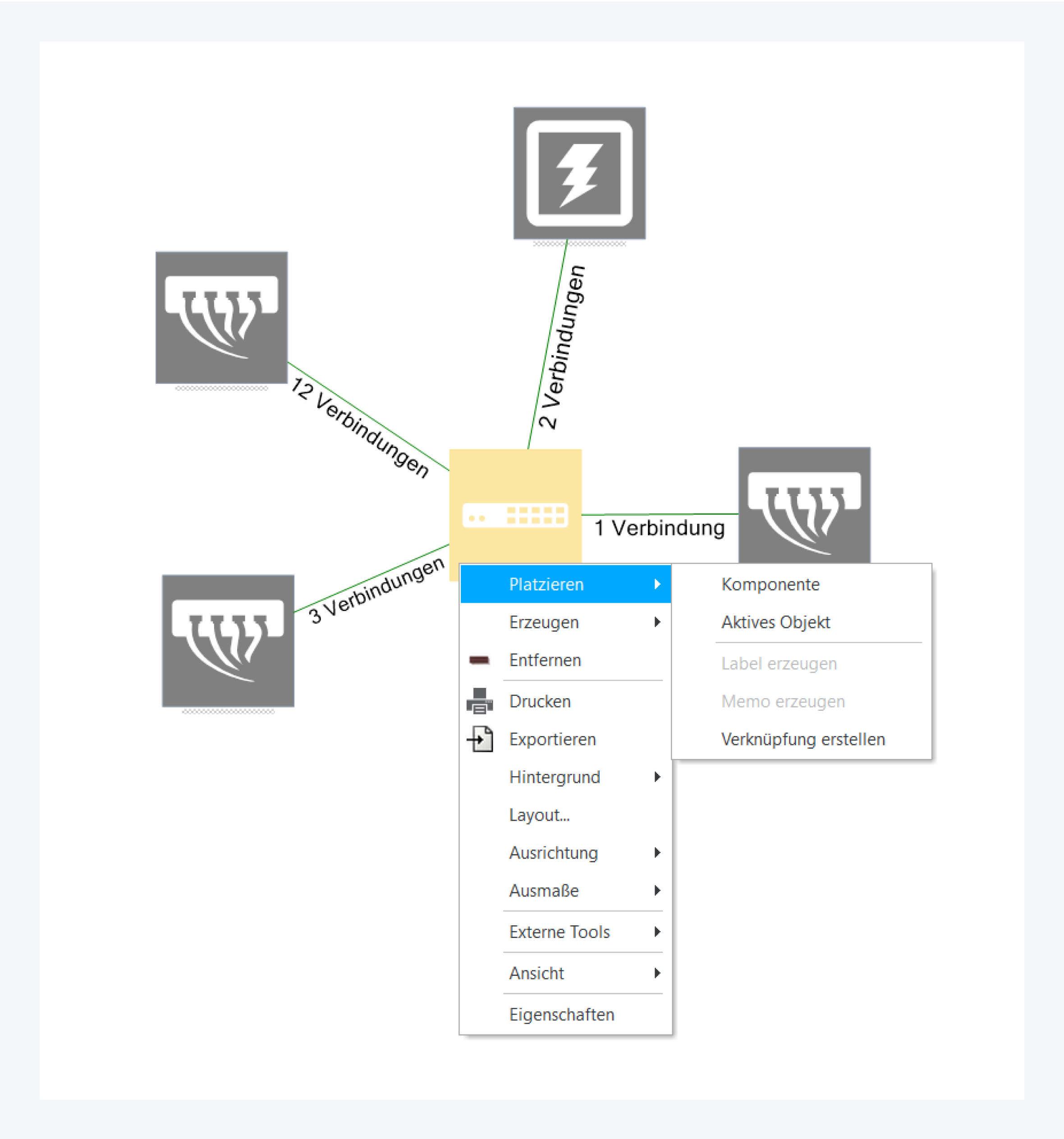 Das Kontextmenü des Netzwerkplans öffnen Sie per Rechtsklick innerhalb der Netzwerkplanansicht.