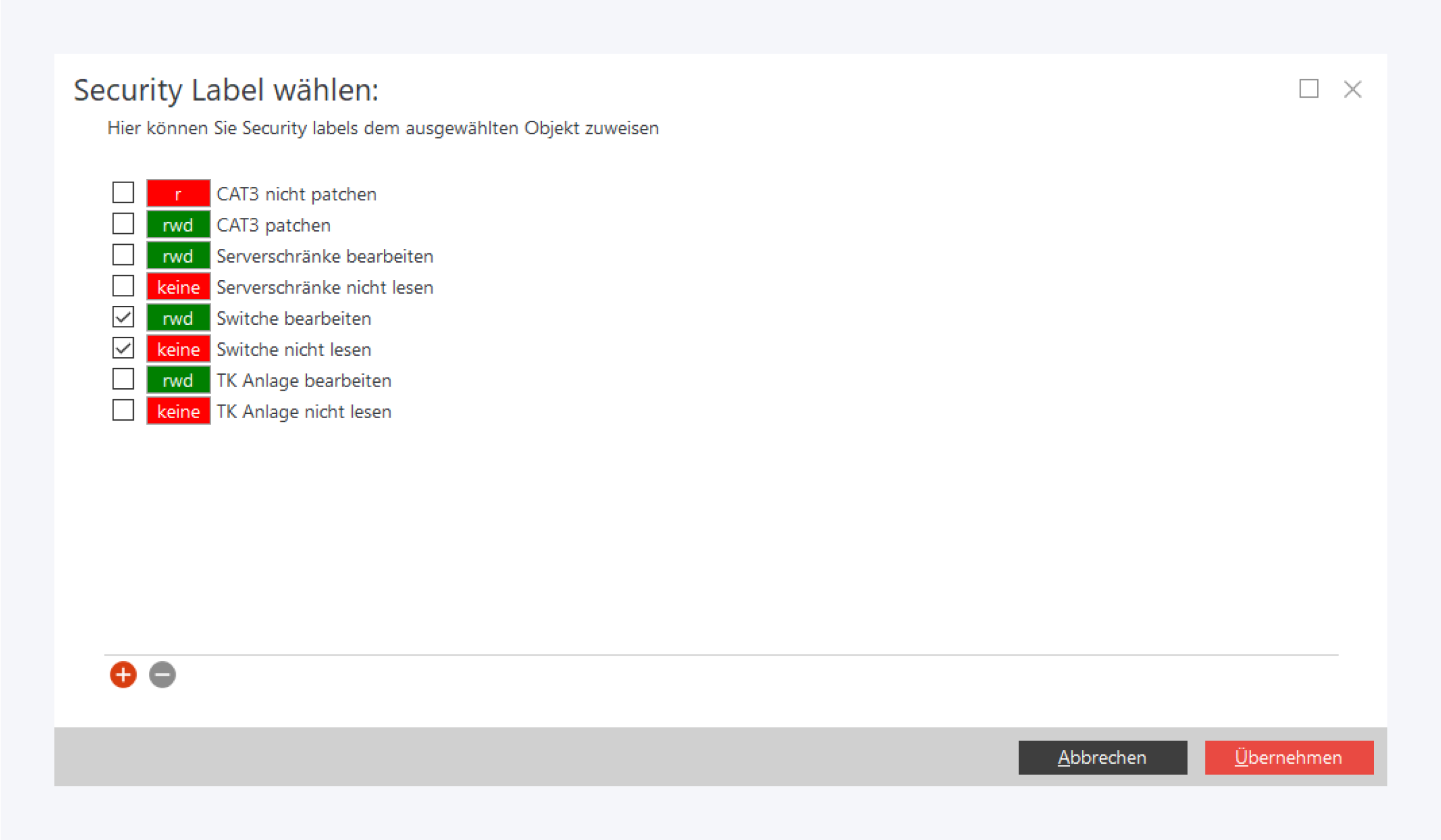 Fügen Sie Security Labels hinzu oder löschen Sie diese, um die Berechtigungen wie gewünscht anzupassen.