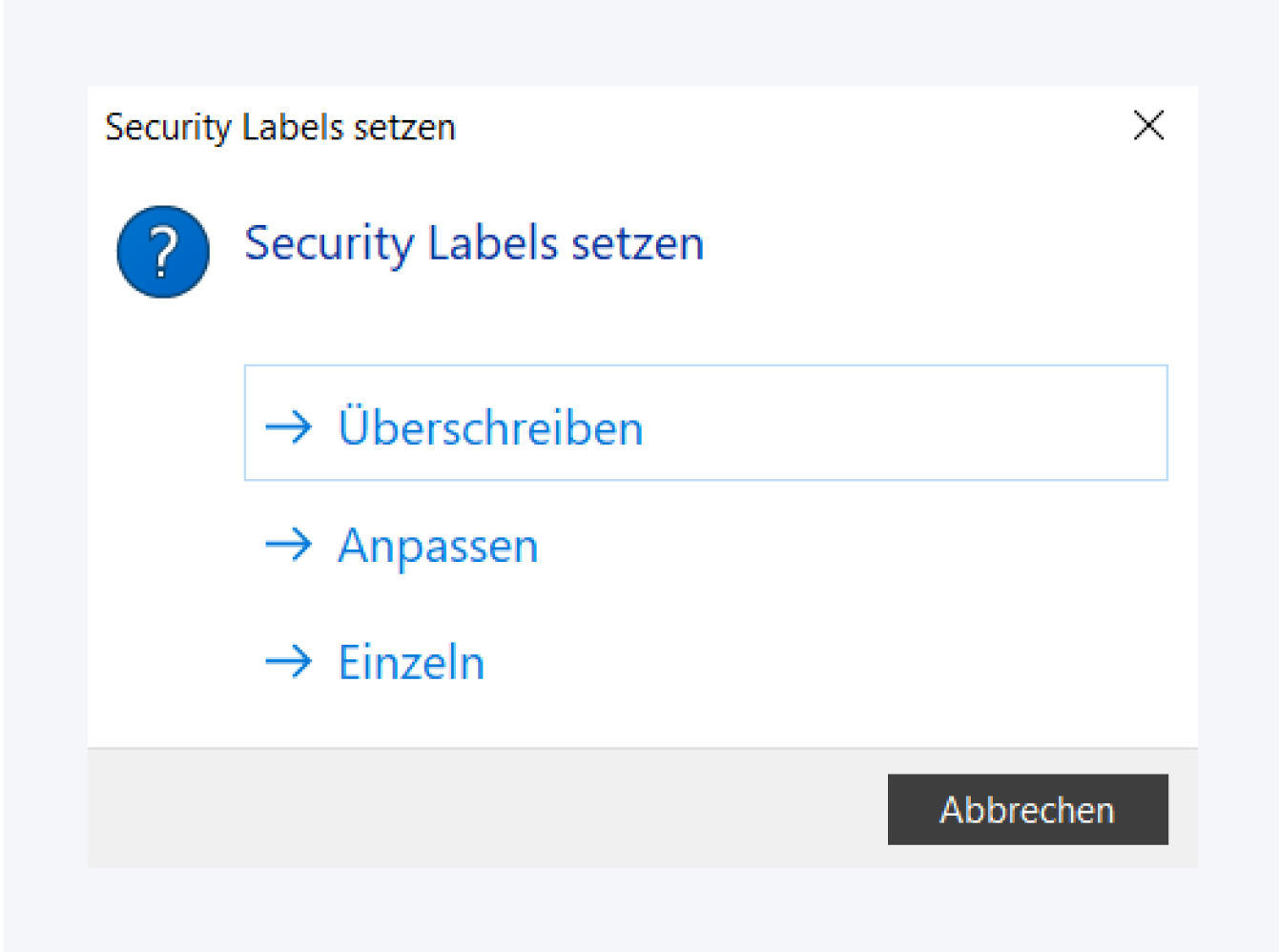 Überschreiben: Es werden alle bisherigen Labels mit der neuen Auswahl ersetzt, auch für alle untergeordneten Objekte.