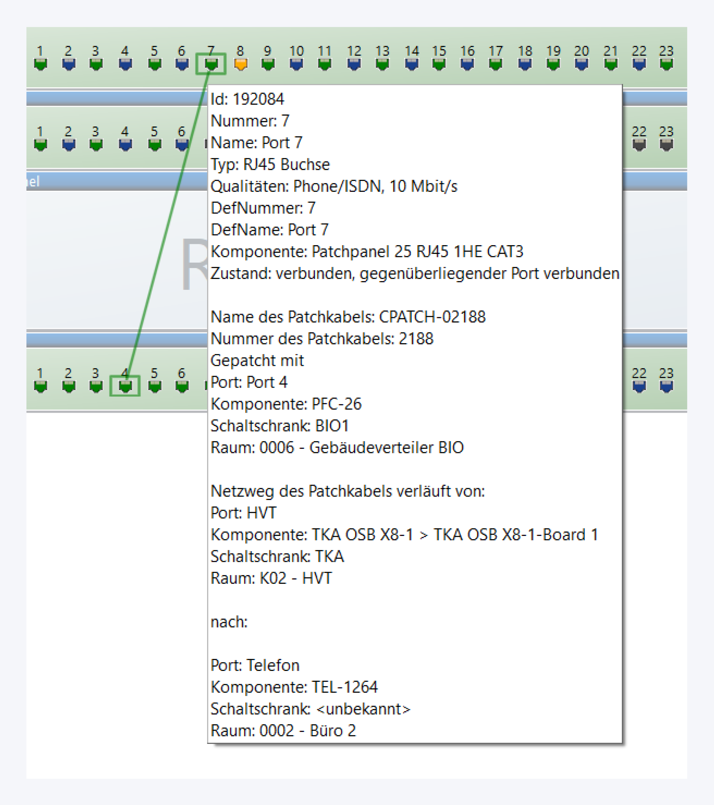 Zusätzlich werden Informationen zu verbundenen Kabeln und dem Netzweg bereitgestellt.