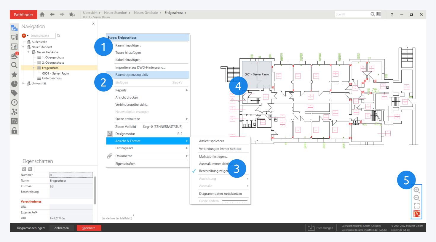 Räume sind in Pathfinder immer Teil einer Etage und können Schaltschränke und Komponenten enthalten.
