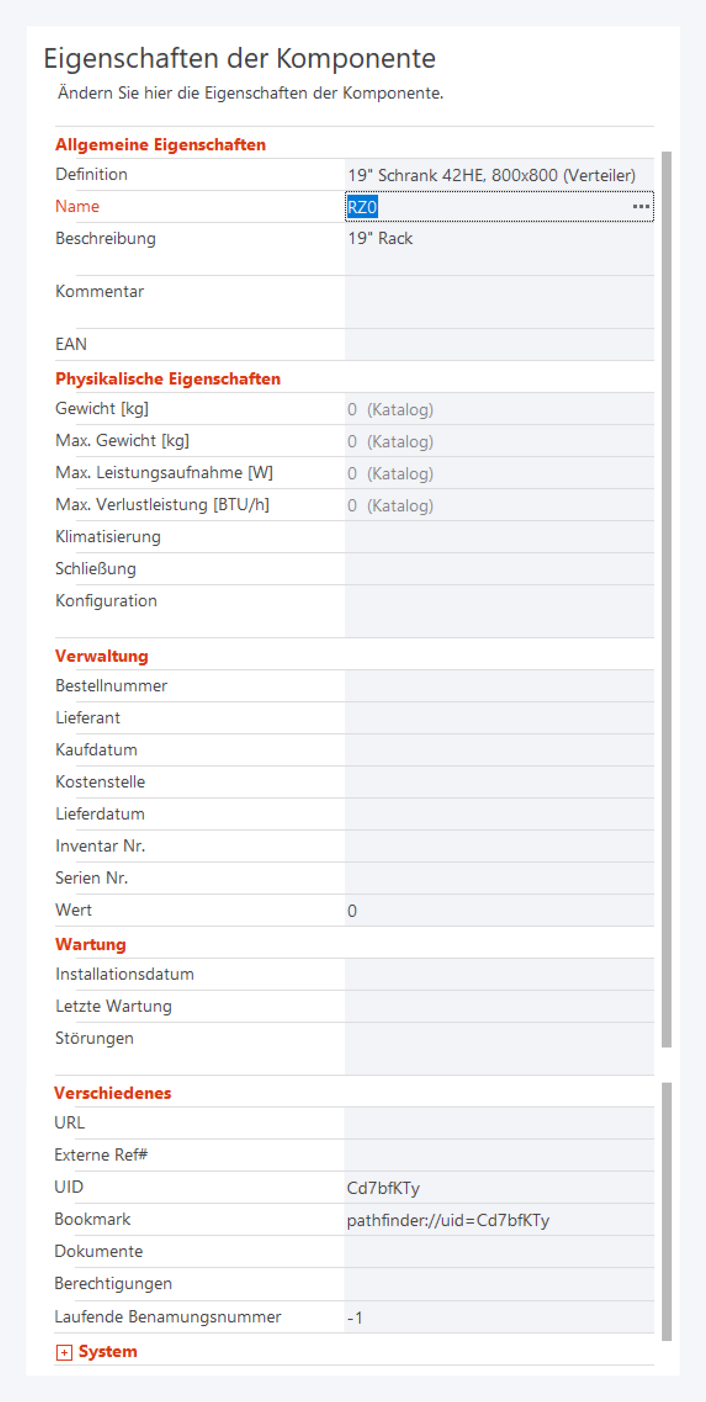 In Pathfinder können Schalt- oder Netzwerkschränke aktive und passive Einbaugeräte, wie Patchpanels, Router oder Switche enthalten.