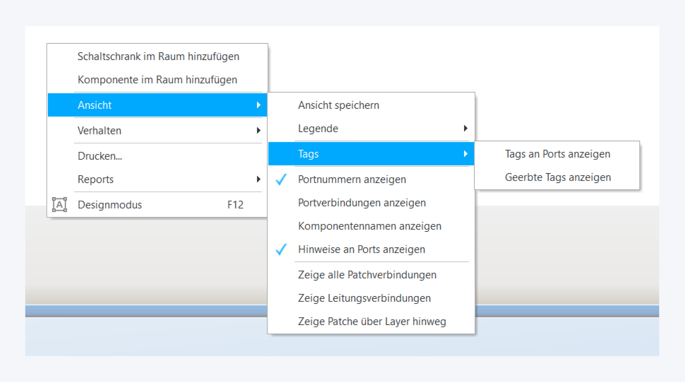 Zeige alle Patchverbindungen: Entscheiden Sie, ob alle Patchverbindungen innerhalb des Schranks immer angezeigt werden sollen.
