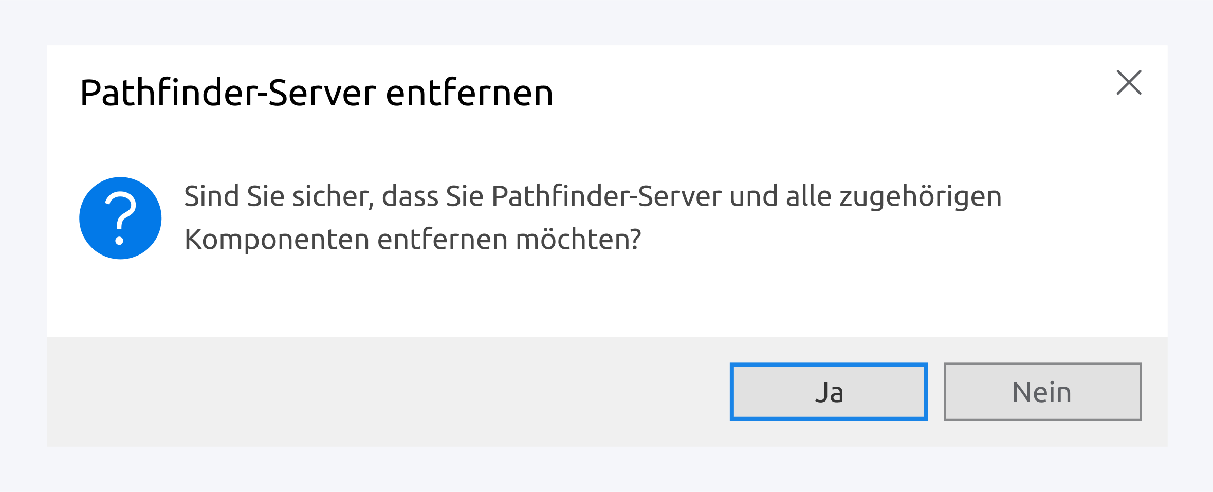 Um Ihre Installation von Pathfinder Server zu aktualisieren, folgen Sie den Schritten oben. Wenn die folgenden Dialoge erscheinen, wählen Sie jeweils Ja aus: