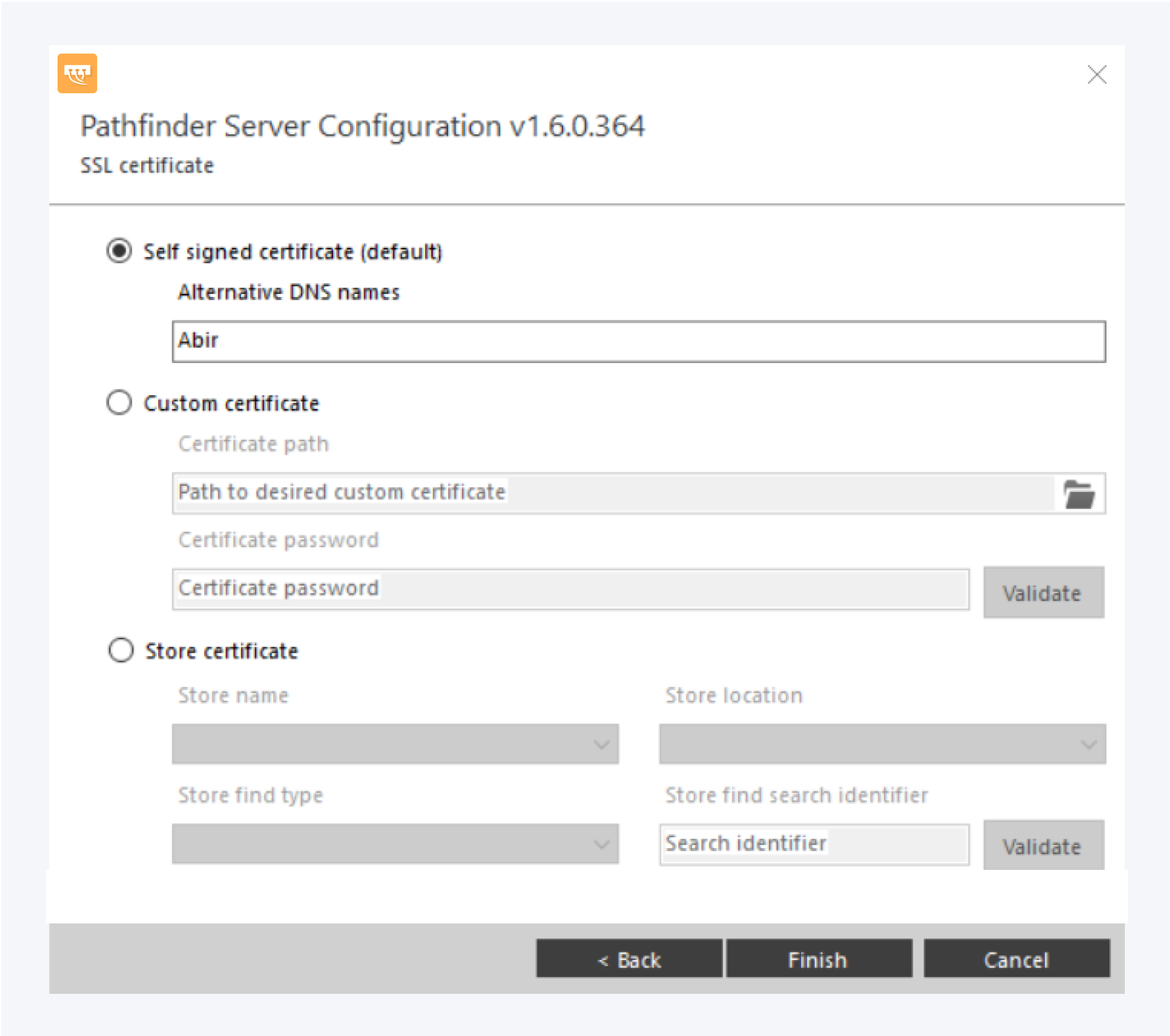Hinterlegen Sie schließlich ein SSL-Zertifikat, entweder standardmäßig ein neues selbstsigniertes oder ein eigenes. Klicken Sie auf Fertigstellen, um die Installation abzuschließen.