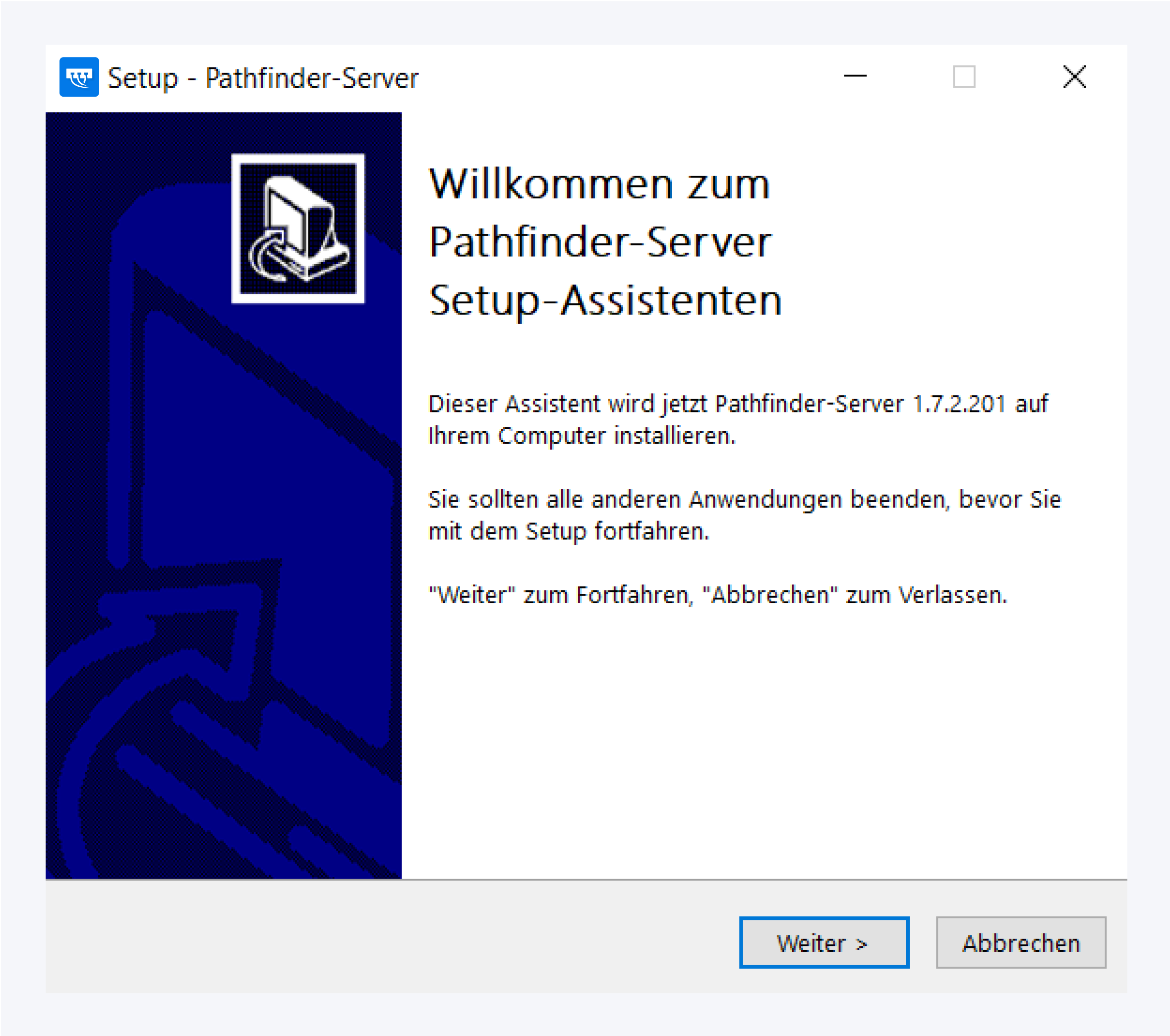 Anschließend muss Pathfinder Server konfiguriert werden. Klicken Sie auf Weiter, um fortzufahren.