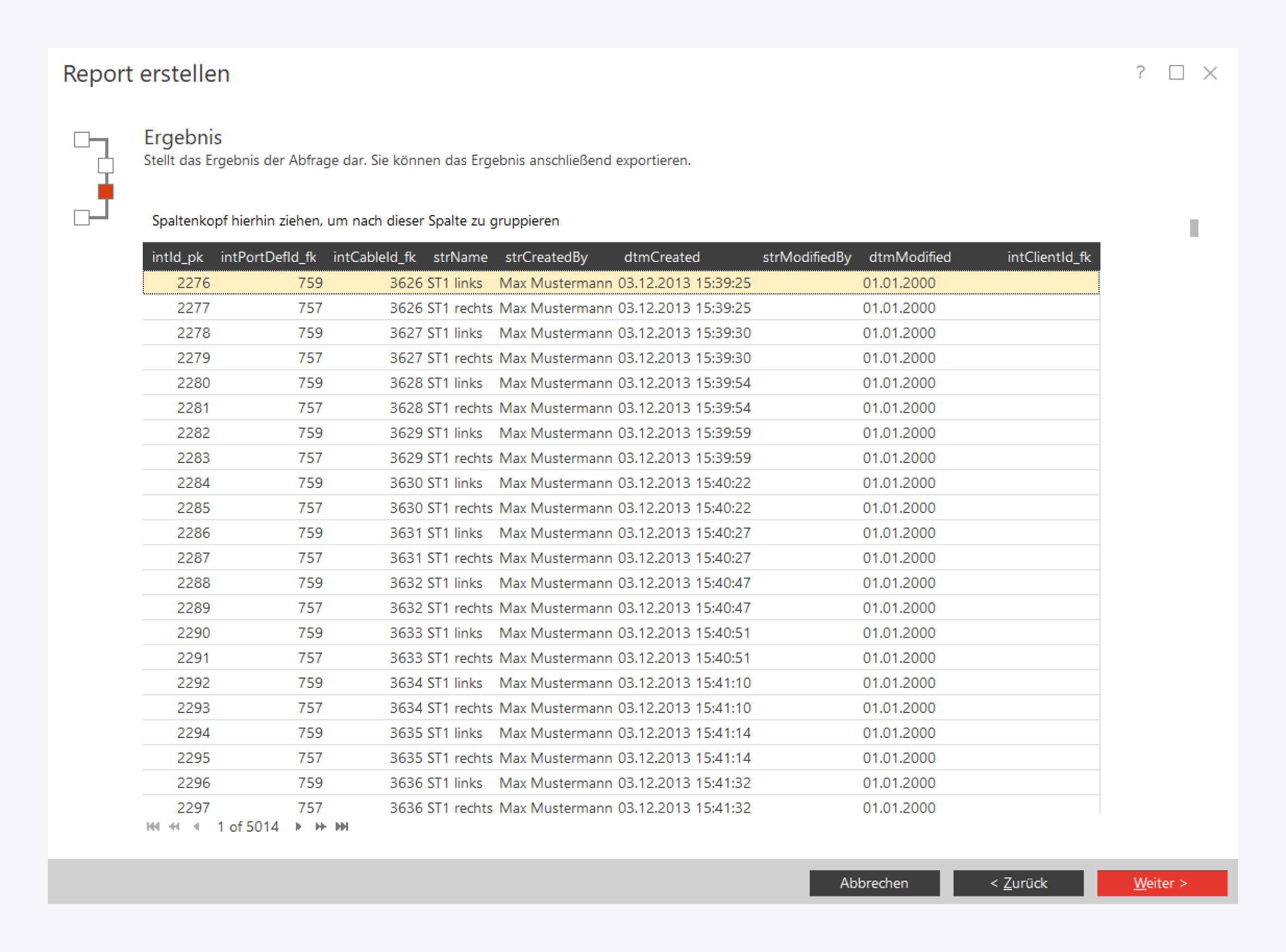 Nun wird das Ergebnis der Abfrage dargestellt. Indem Sie einen Spaltenkopf nach oben ziehen, können Sie die Liste nach dieser Eigenschaft gruppieren. Das ist auch für mehrere Spaltenköpfe gleichzeitig möglich.