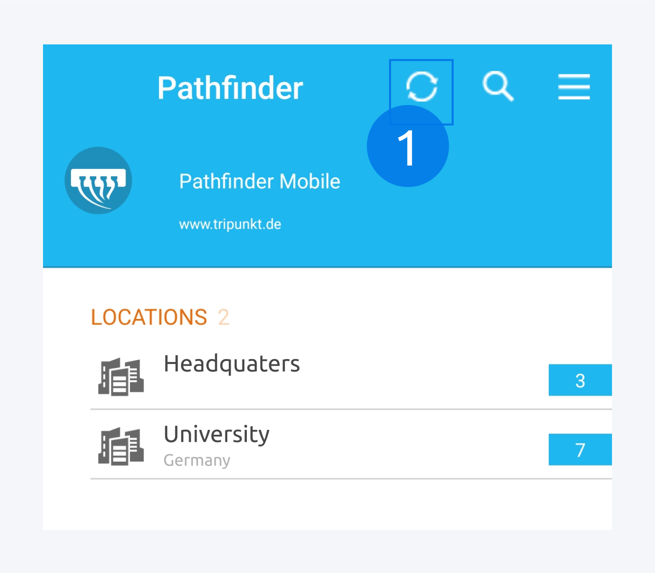 Tippen Sie auf das Pfeil-Icon, um den Synchronisationsvorgang zu starten (1).