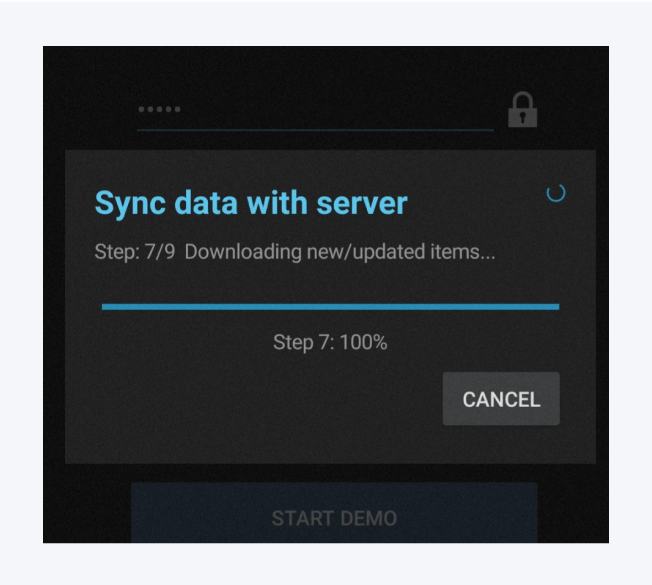 Pathfinder Mobile geht nun alle lokalen Änderungen durch und überträgt Sie an den Server und lädt alle Änderungen, die seit dem letzten Synchronisieren durch andere Nutzer vorgenommen wurden, herunter.