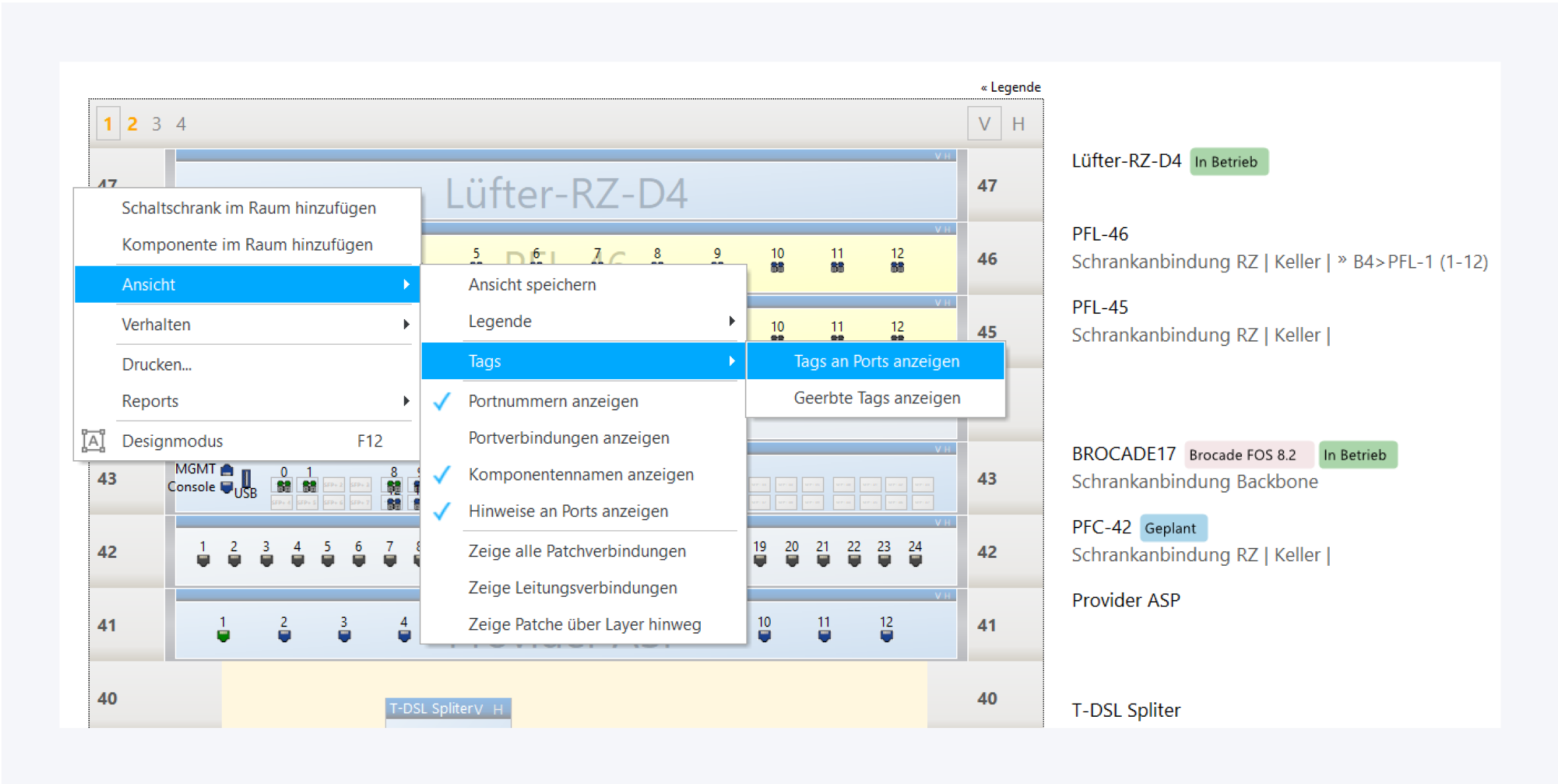 In der Tagverwaltung können Sie sowohl der Komponente, als auch den Ports Tags zuweisen, aber auch Zuweisungen bearbeiten und entfernen.