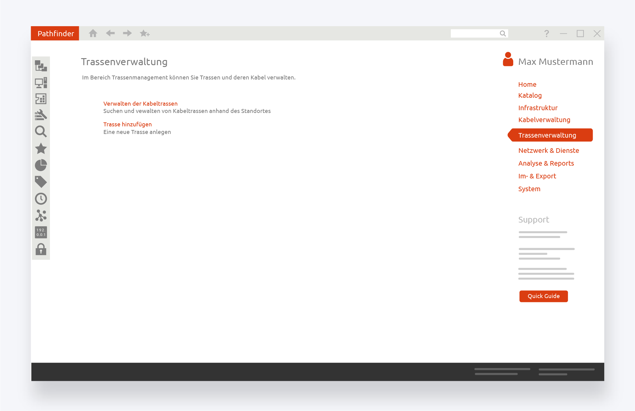 Nutzen Sie die Trassensuche, um beim Erstellen neuer Kabel schnell und einfach eine existierende Trasse zu finden.