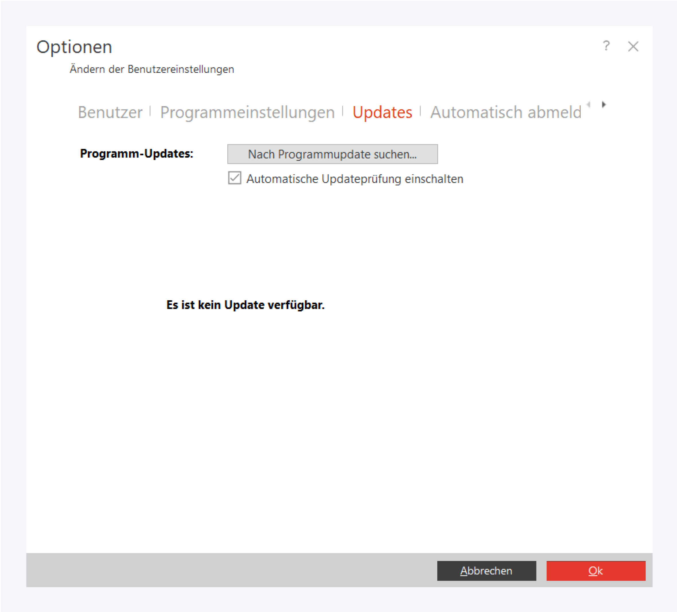 Hier können Sie manuell nach verfügbaren Pathfinder-Updates suchen, oder die automatische Updateprüfung aktivieren.