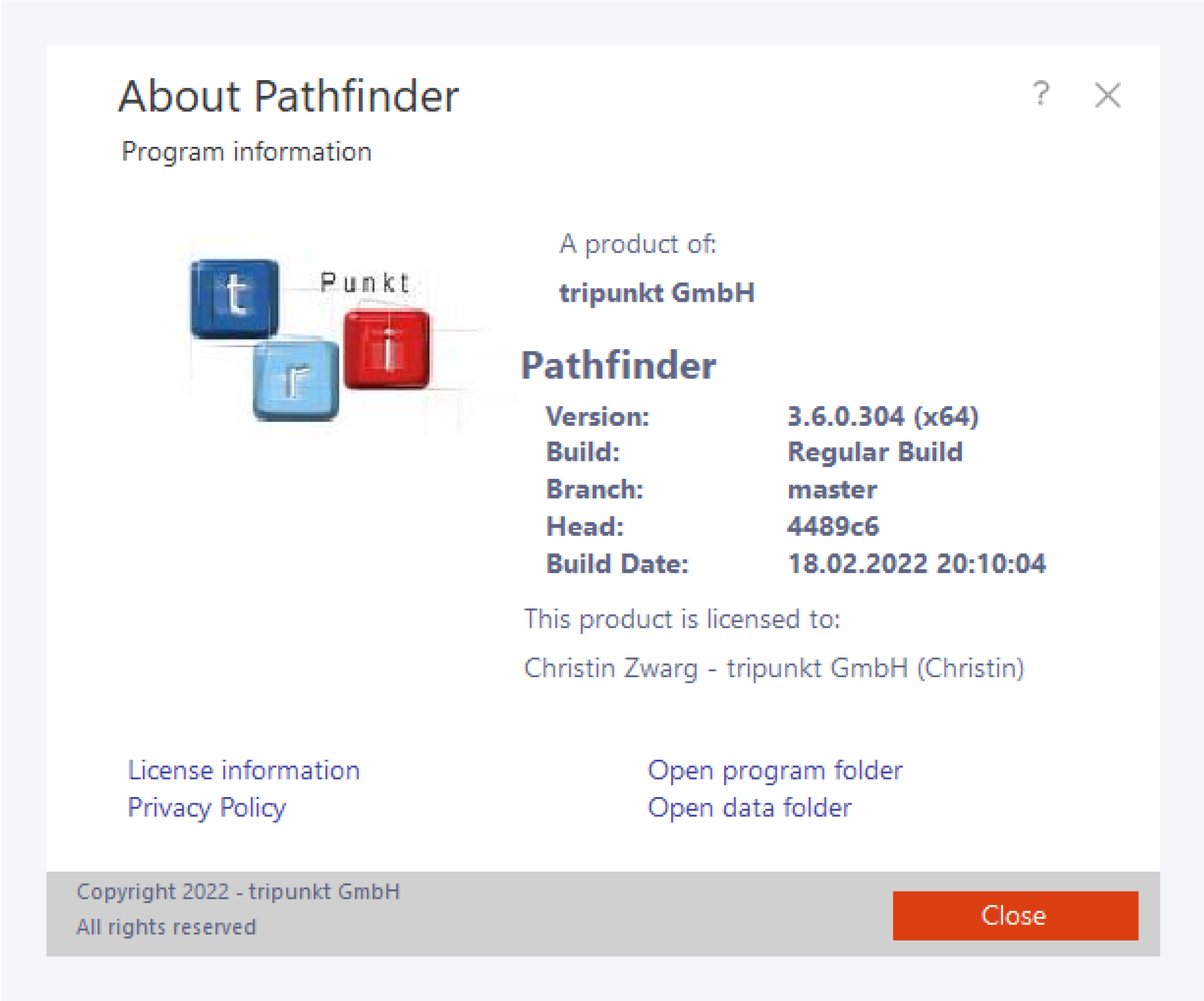 In this section you can find all information about your current Pathfinder version and license.