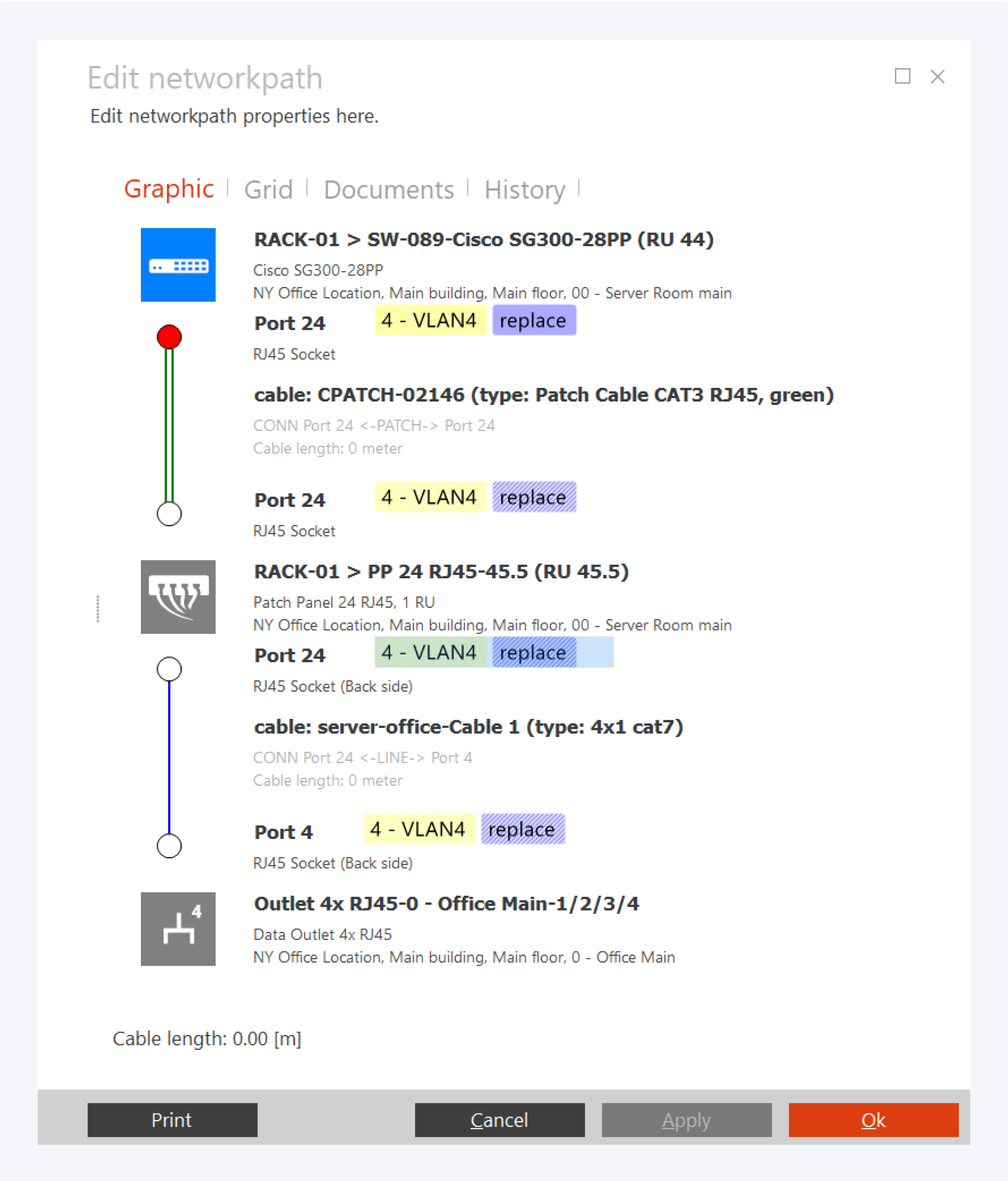 All tags, inherited tags and VLANs are displayed in the network path of a connection.