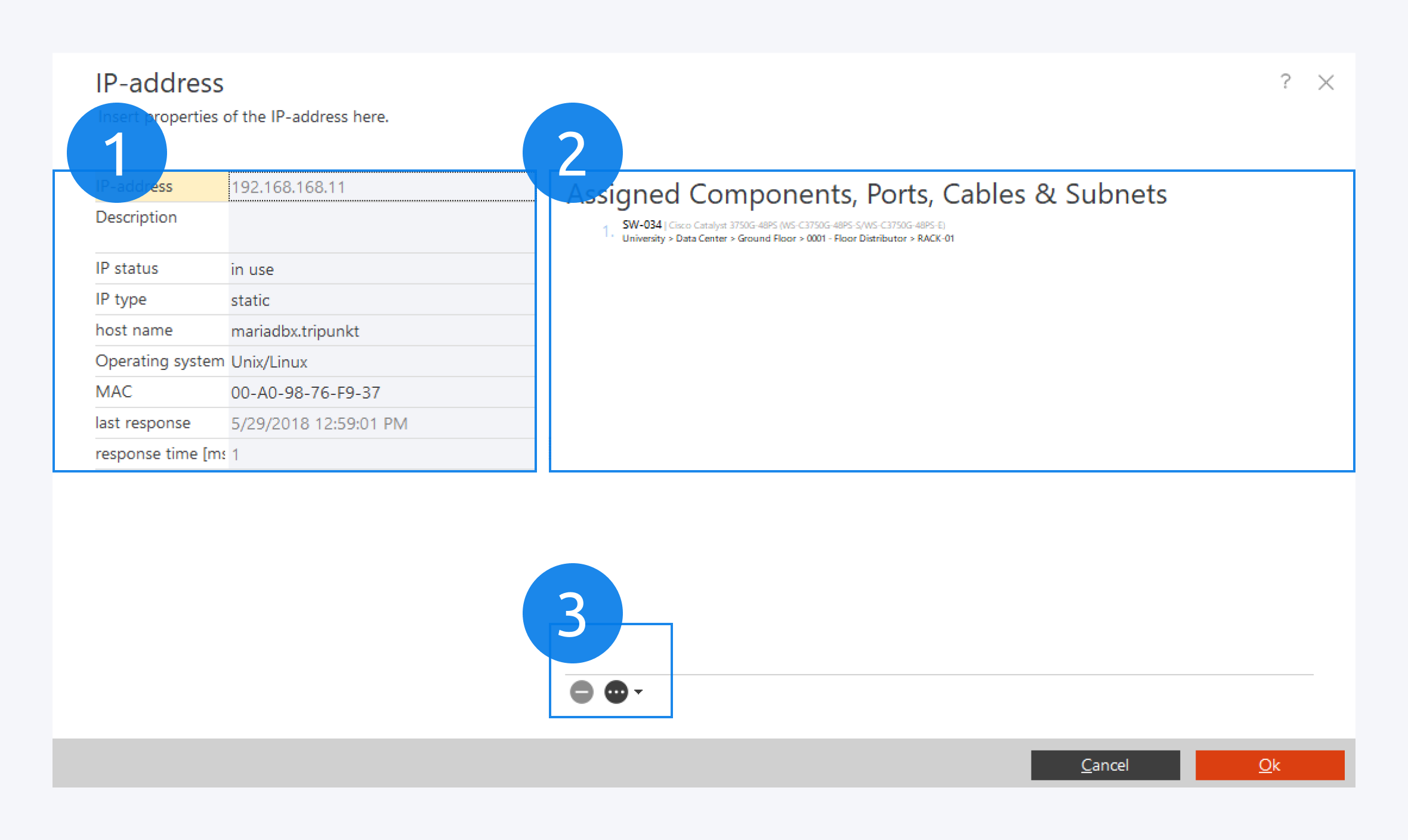 The component that this IP address is assigned to is displayed on the right (2). Double click that component to jump to it in the main window.