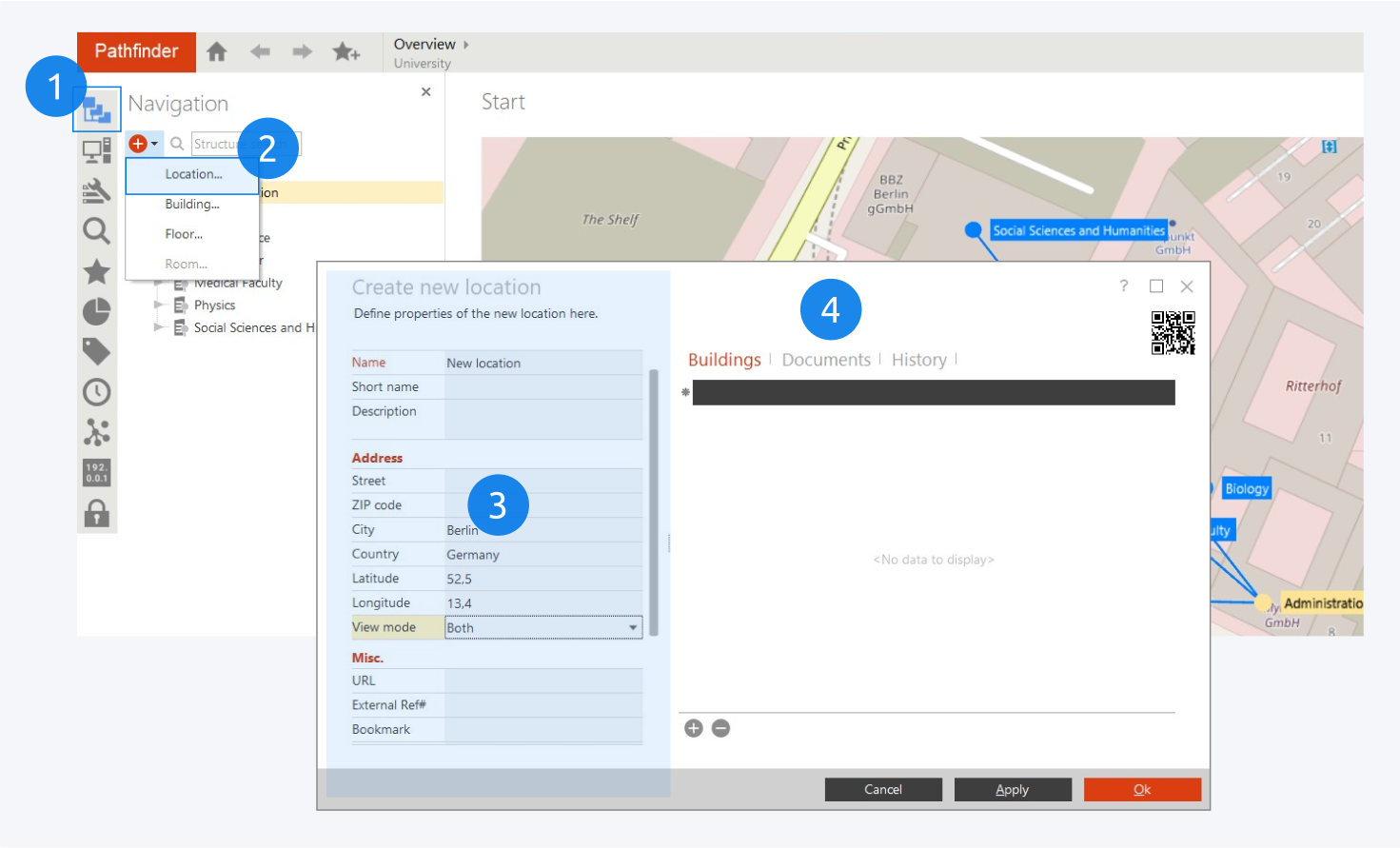 Fill out the information for your new location (3) and click OK to create the location and add it to the map.