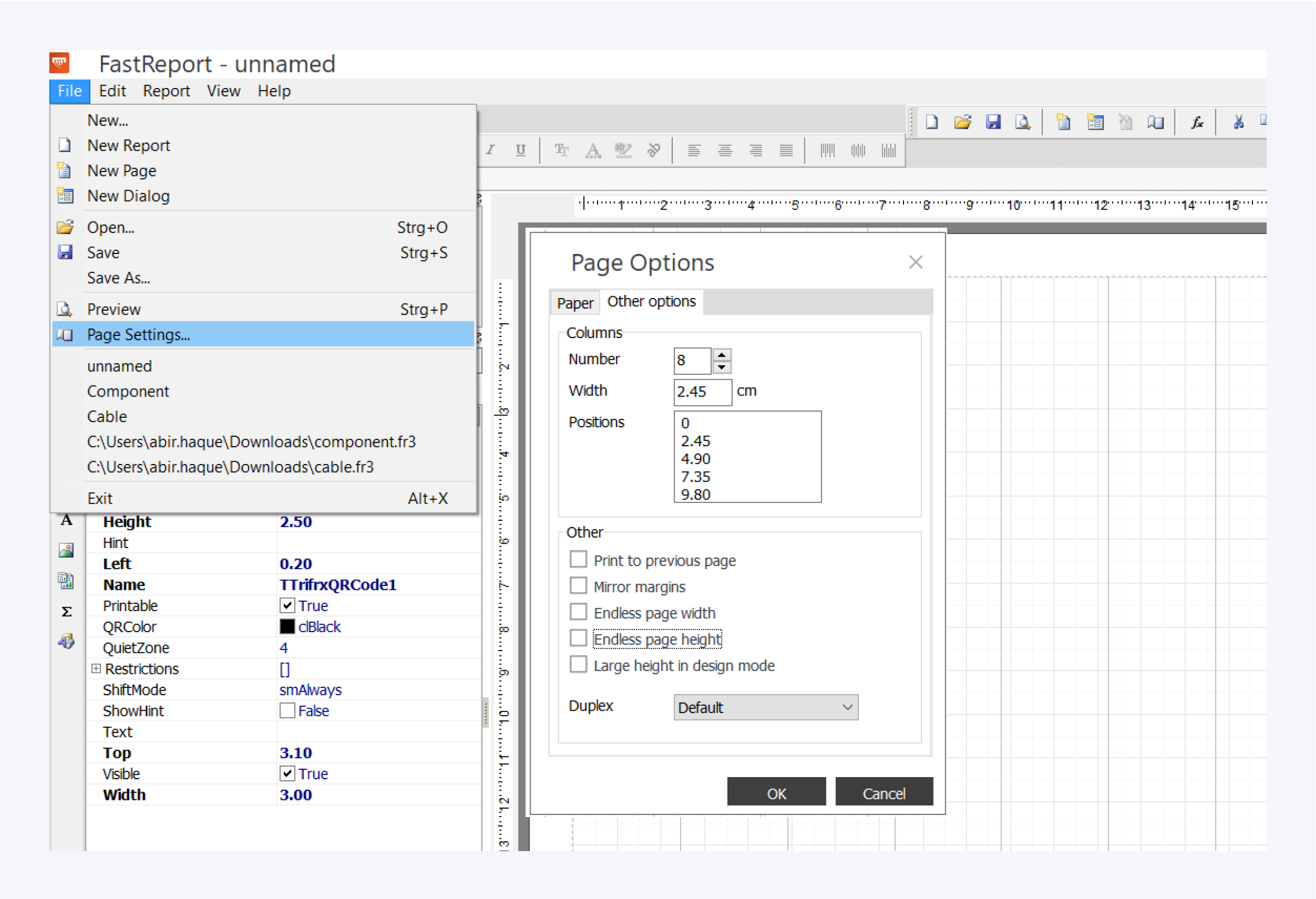 Go to file in FastReport and select open. Open the multiple columns file. The template will be saved in Pathfinder.