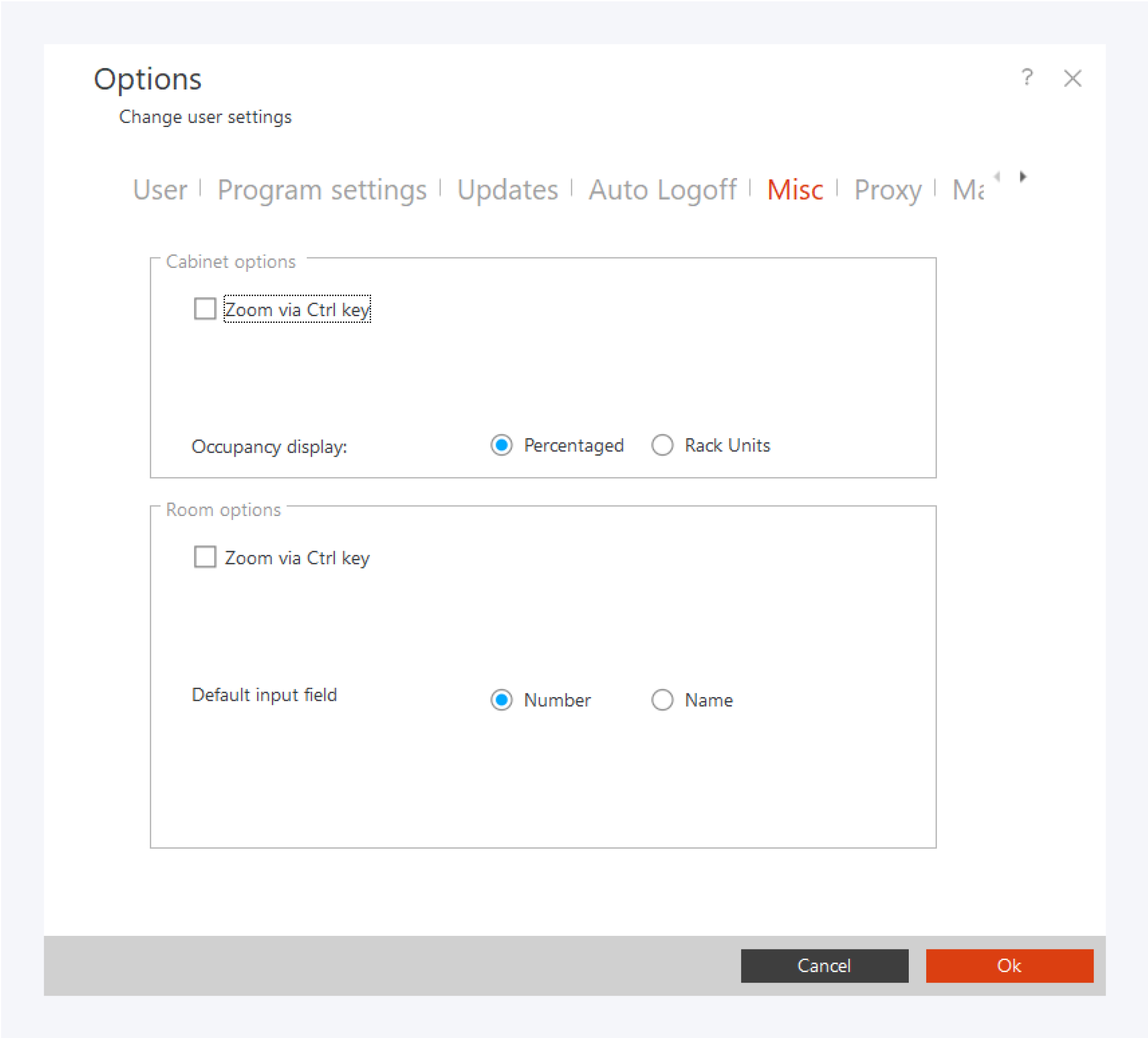 You can set the rack occupancy view as either in percentages or Rack Units.