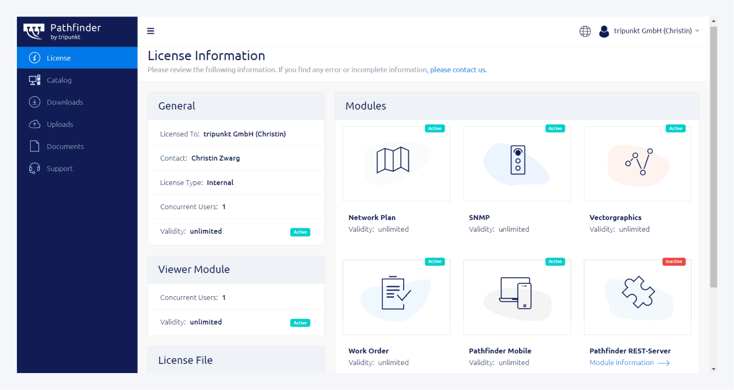 License: You can find information about your license and release updates about Pathfinder. You can also download the Pathfinder installer here.