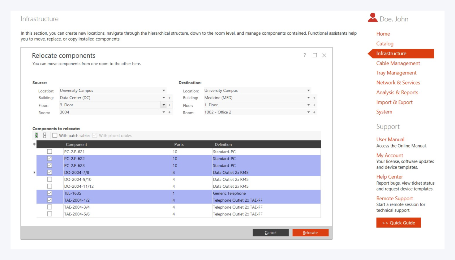 Select the components from the source location and click on Relocate to finish the relocation process.