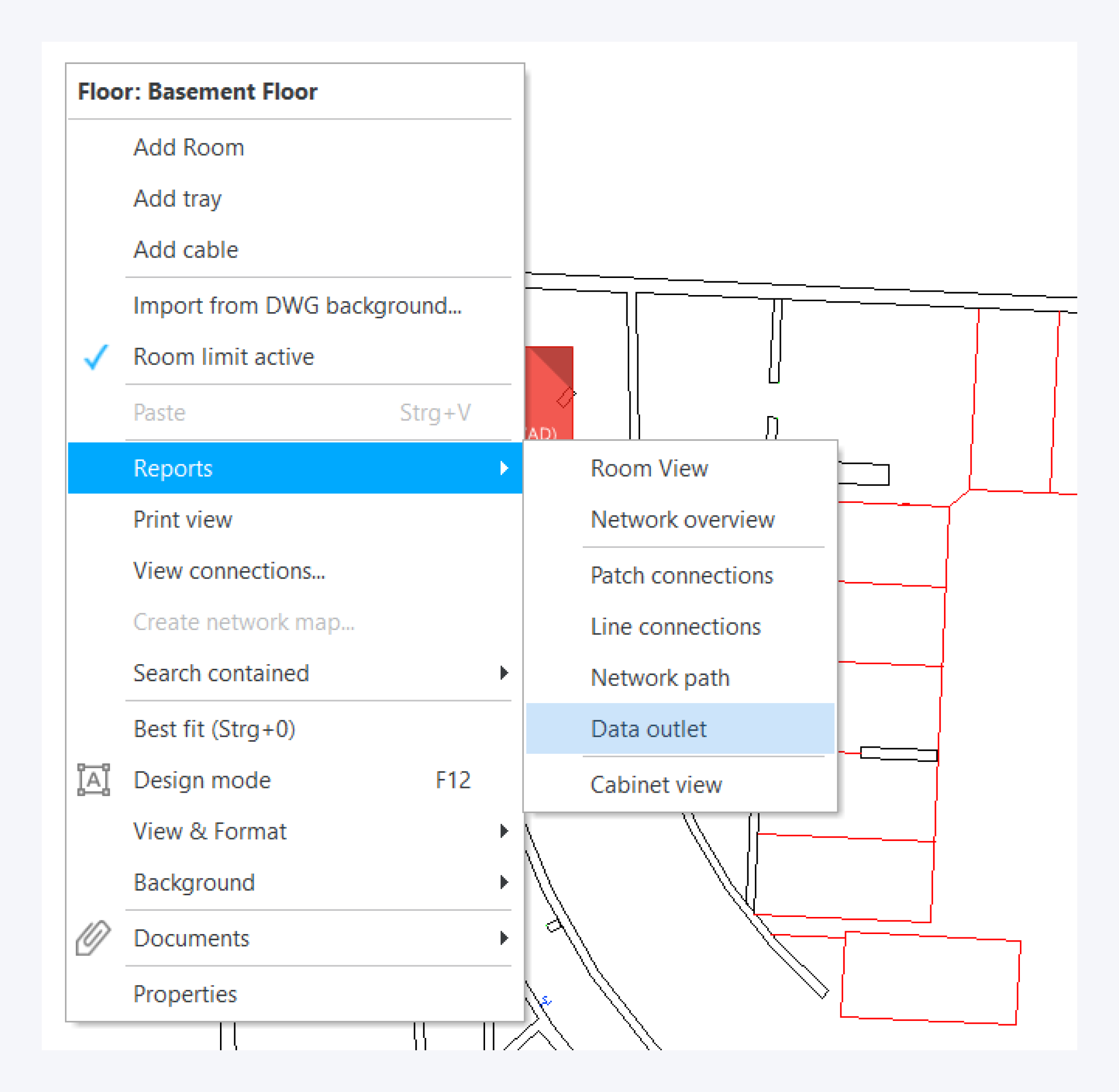 You can create a data outlet report for any location using the reports option from the context menu.