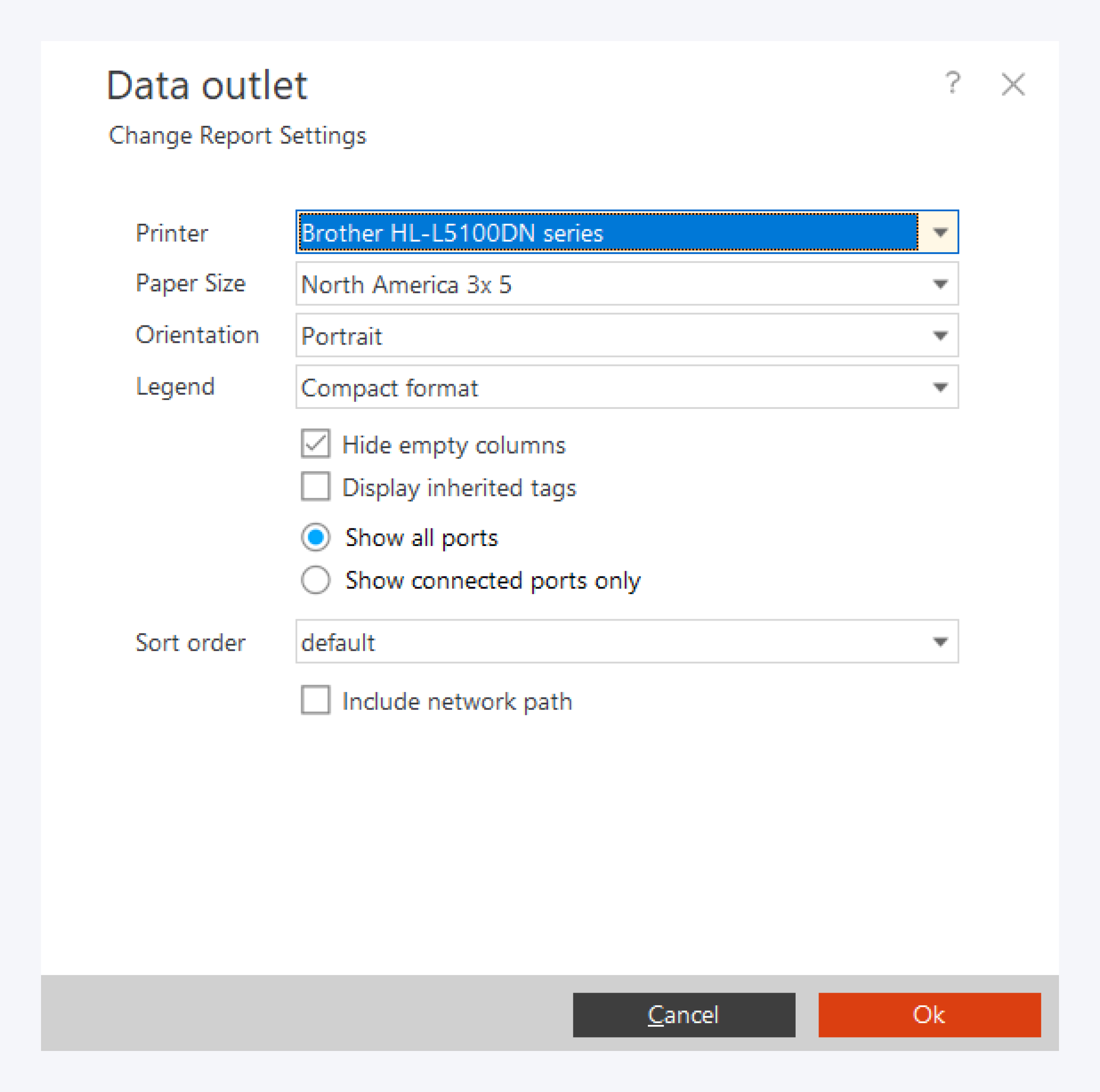 The Data outlet report includes all data outlets included in the selected infrastructure object.
