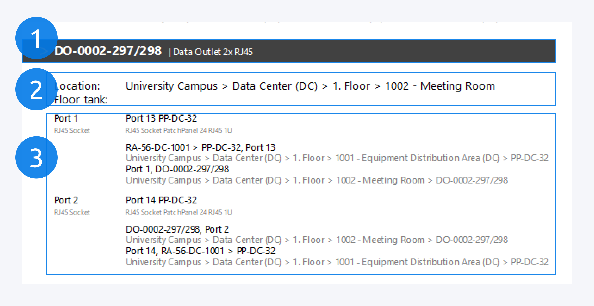 The port connection information is displayed here (3). Here you will find the port information, component information and network paths.
