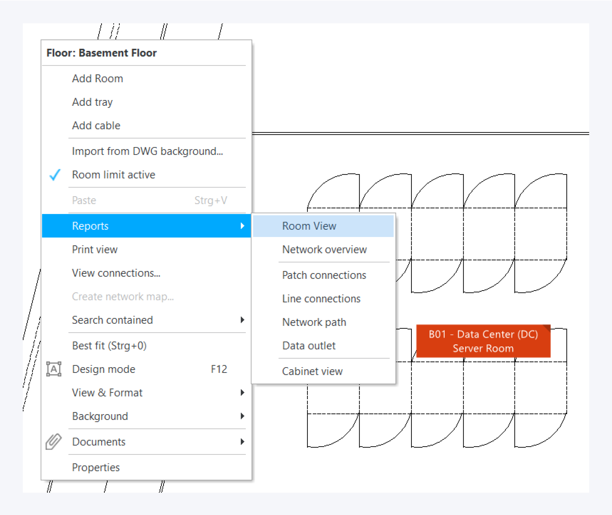 You can access it from the context menu of any infrastructure object. This will create a report with all the components in the included rooms.