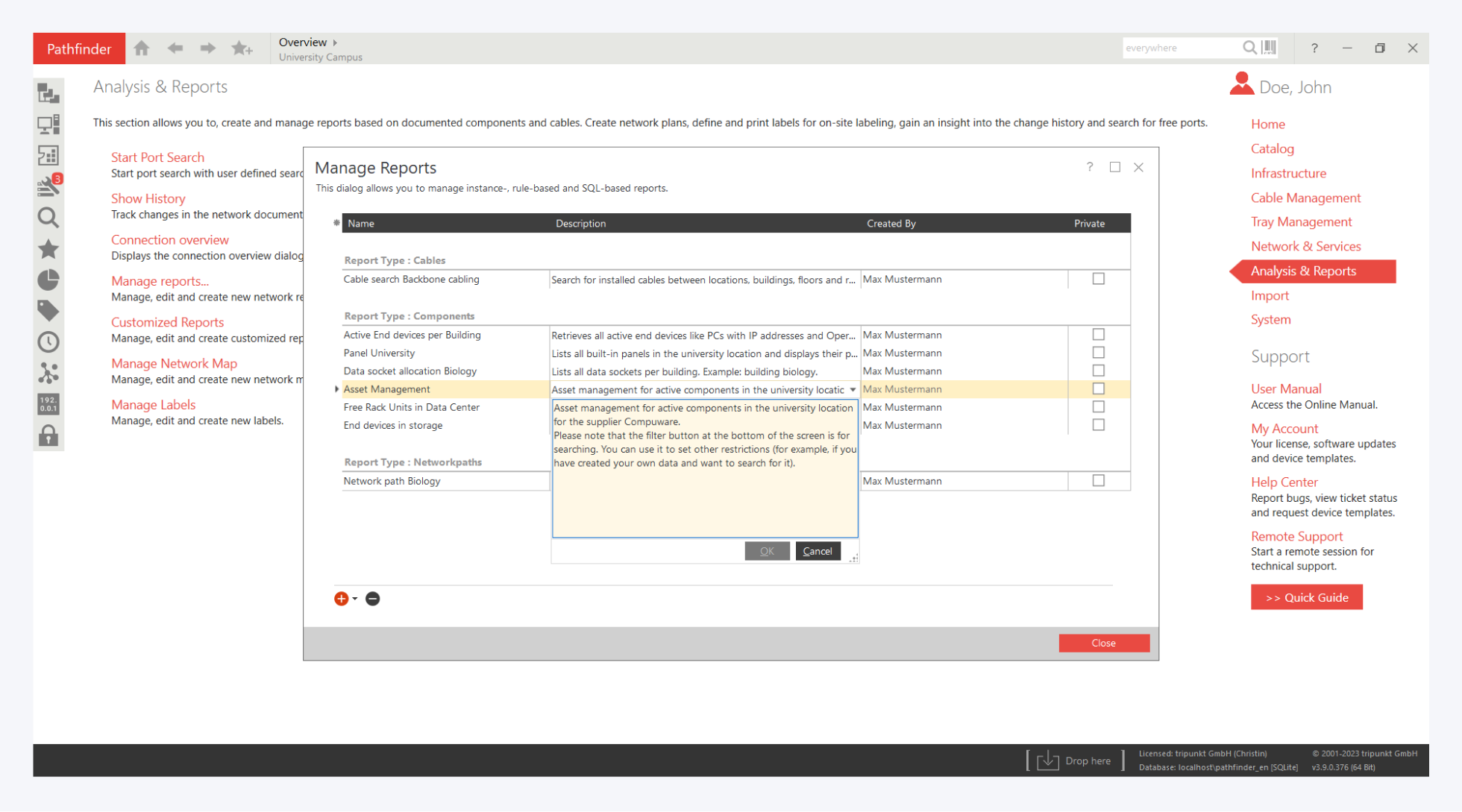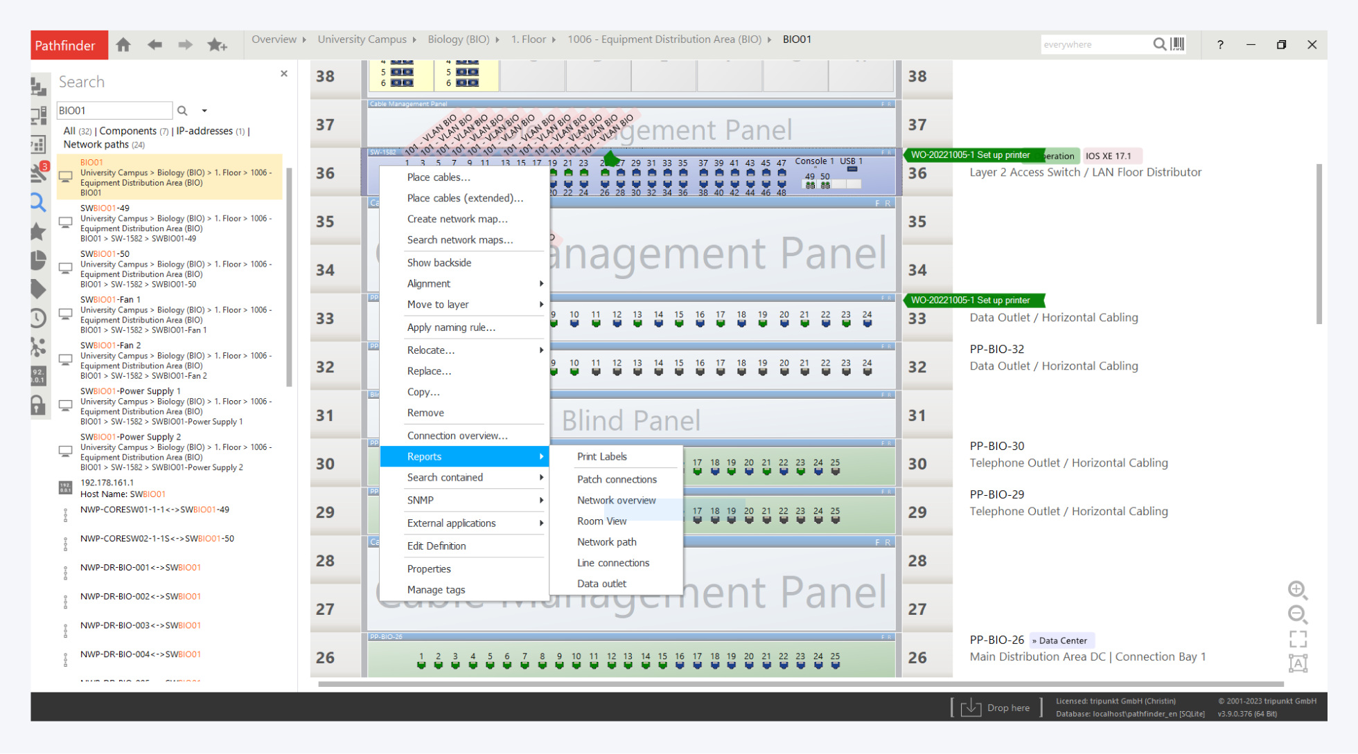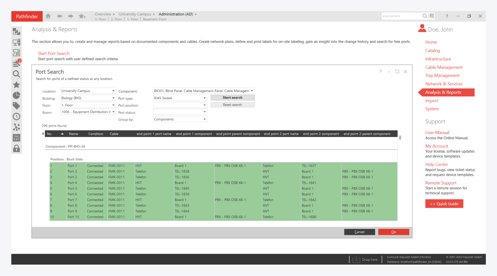 We have also prepared a sample report for you to search for installation cables, e.g. between buildings in the primary level. Simply open the report "Cable search for Backbone cabling".