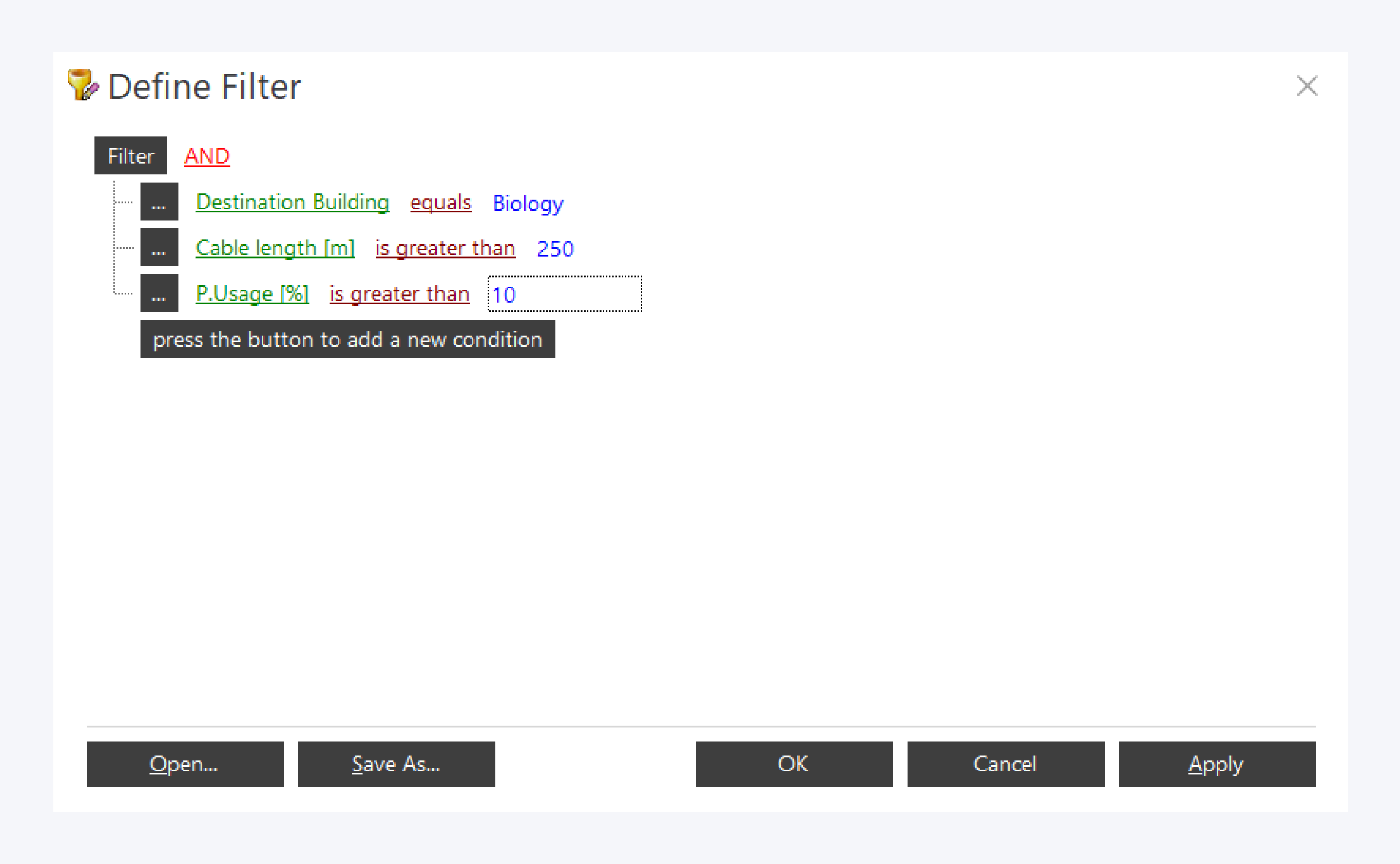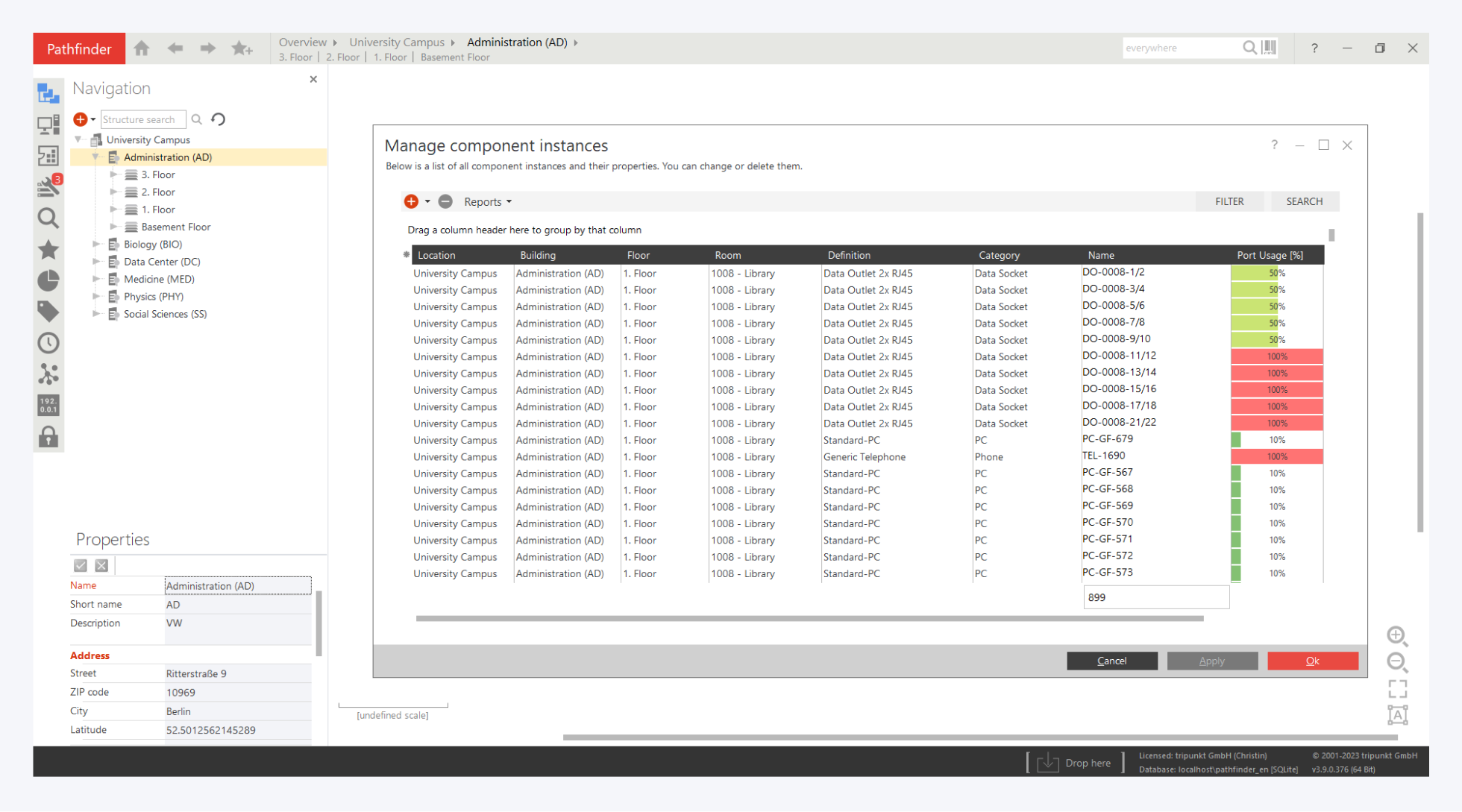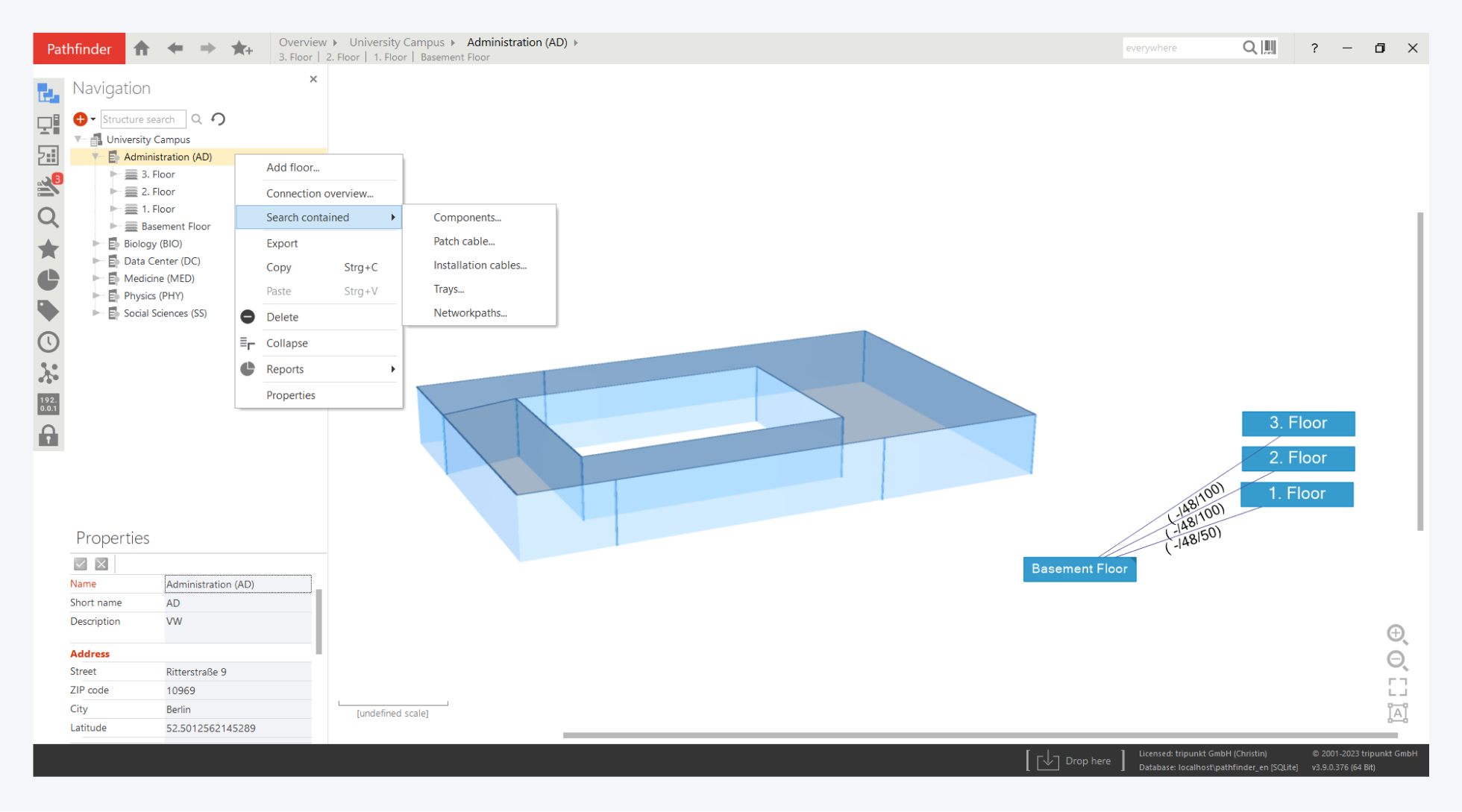 We have also prepared a sample report for you to search for installation cables, e.g. between buildings in the primary level. Simply open the report "Cable search for Backbone cabling".