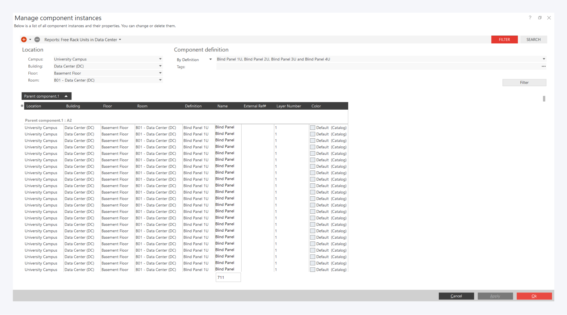 Sample report “Free Rack Units”