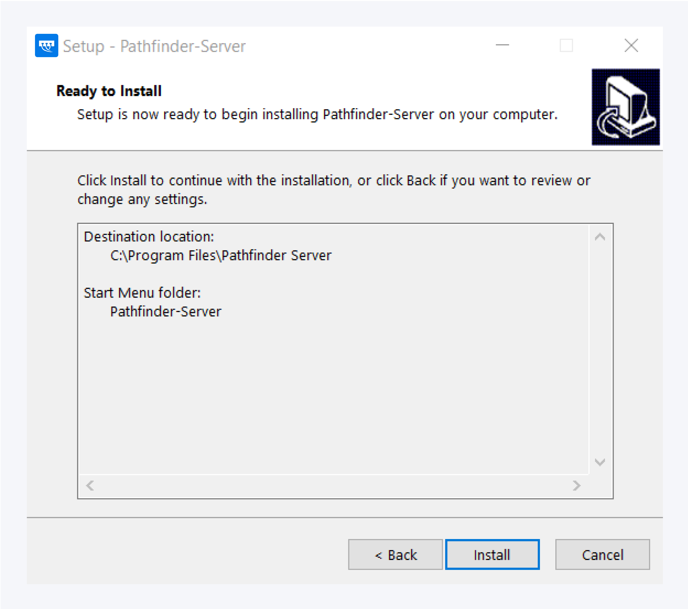 Choose the installation location and folder name for the start menu and click on Install to start the installation of Pathfinder Server on your system.