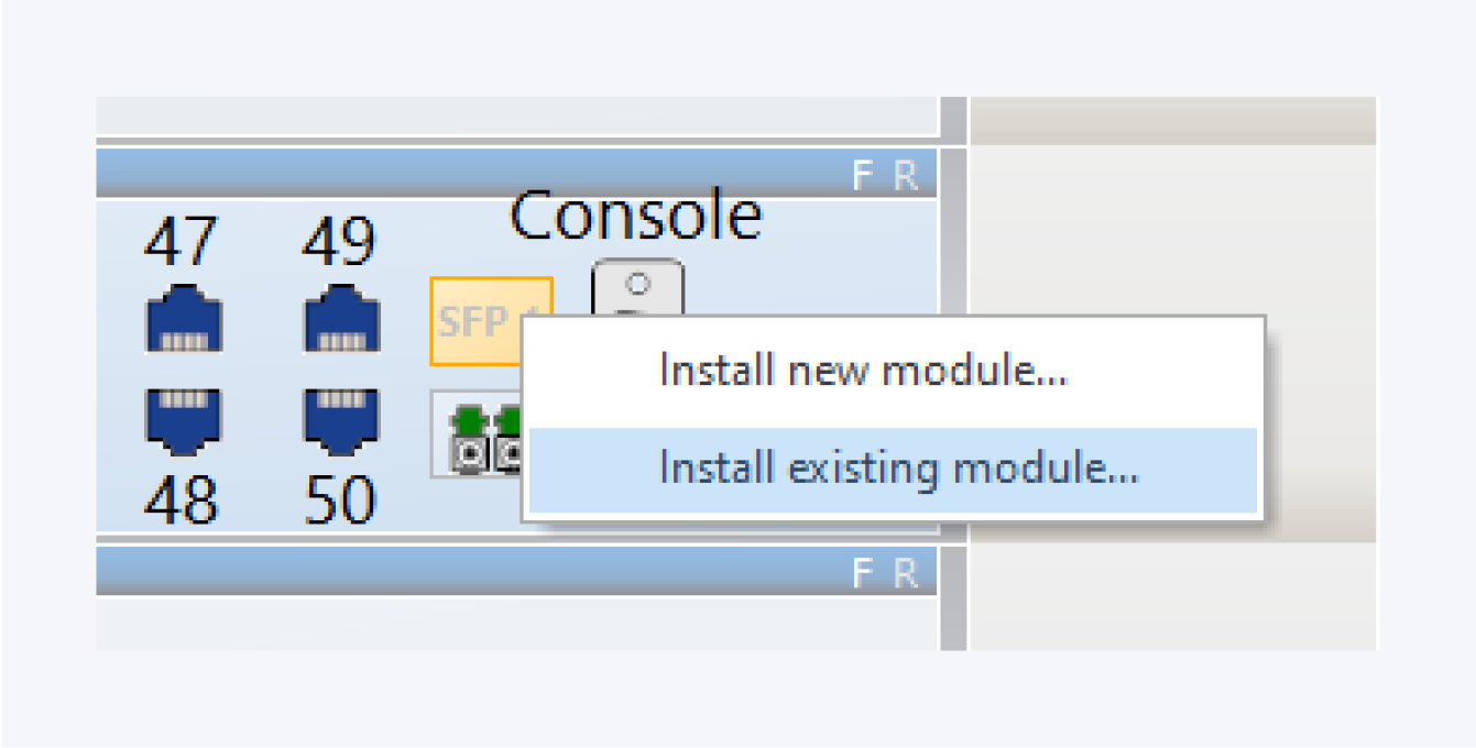 When you place a module you can simply select an existing module that is currently stored in a storage room.