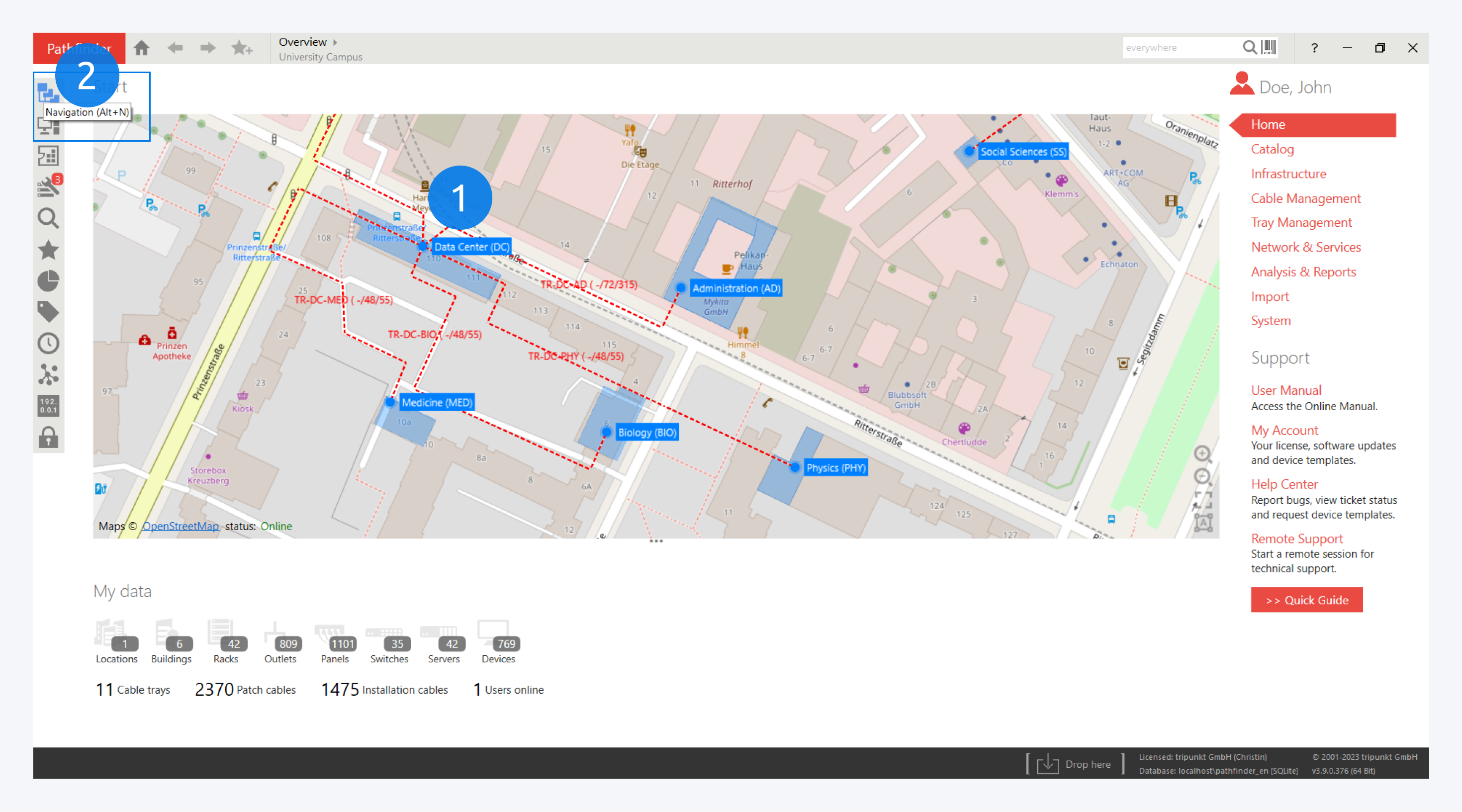 An extensive demo database is available for the entire test period. Numerous examples demonstrate the various functions of Pathfinder in a very practical way. In addition, the demo gives you the opportunity to test Pathfinder to its full extent without having to enter any data yourself. Below we present the most interesting parts.