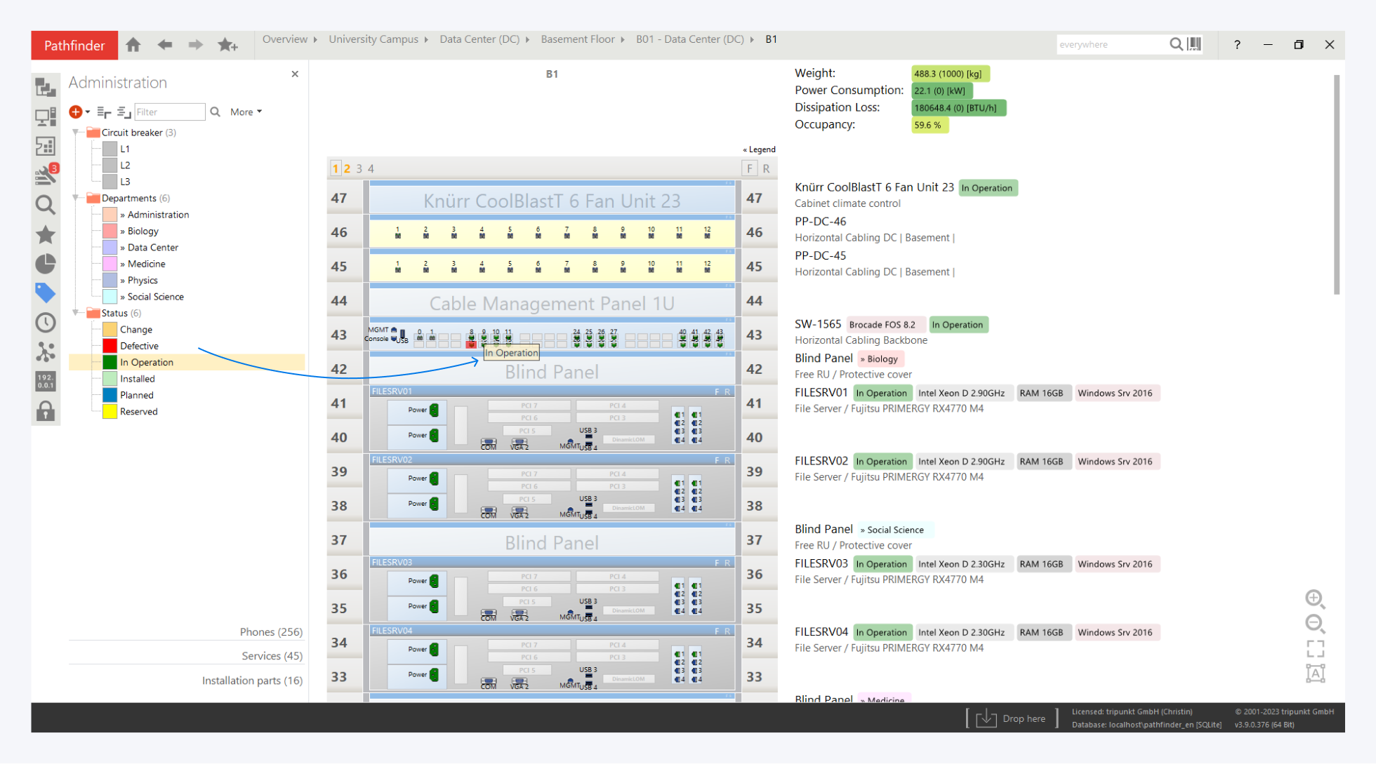 In our example, simply click on Administration and open the Status group. This example is to show that you can e.g. tag a status of installed devices.