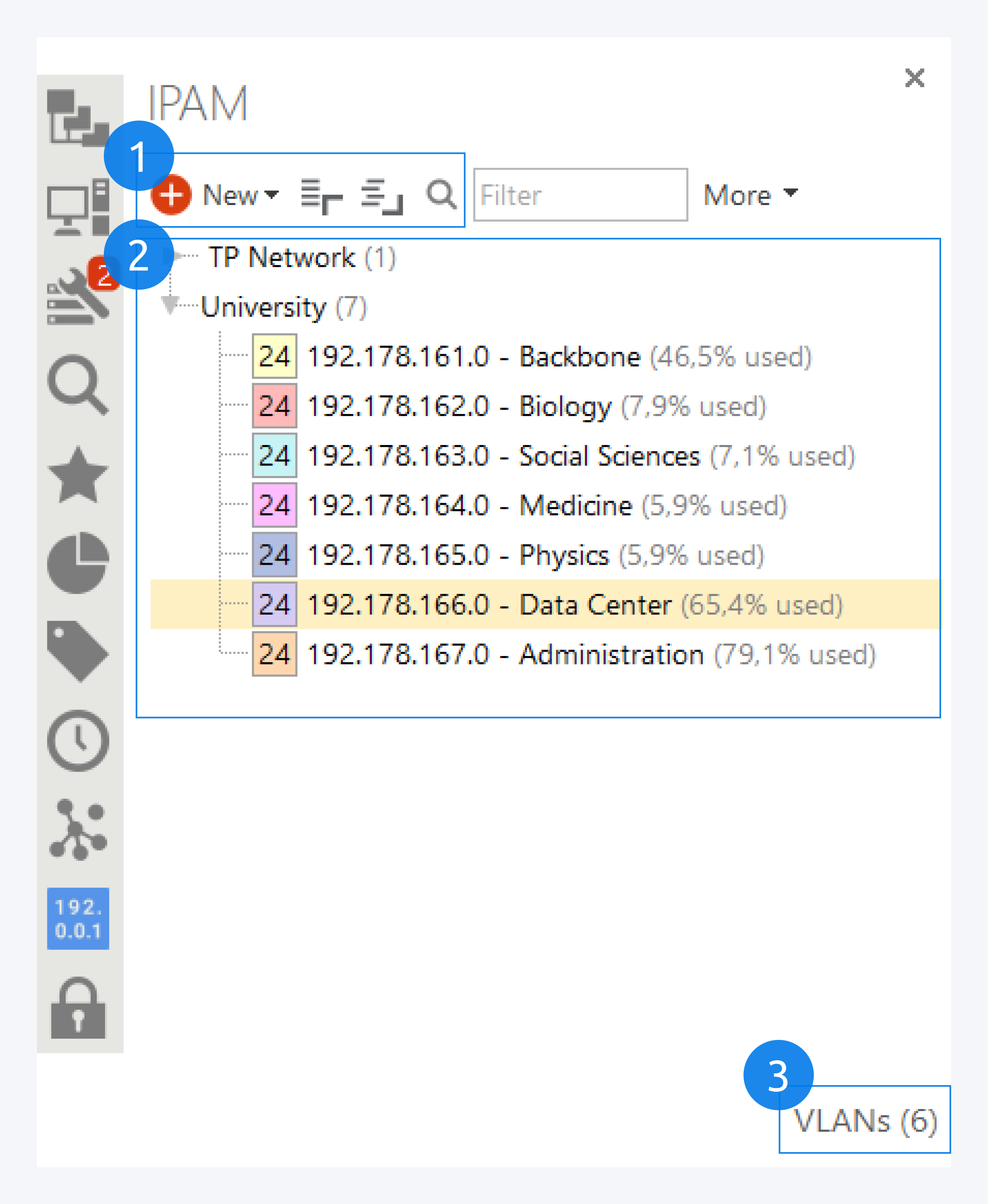 You can switch between the IPAM network subnet overview and VLAN tags (3).