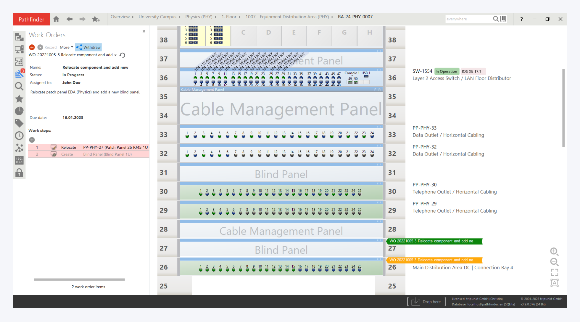 Why not give it a try right now? Have a printer set up or move a patch panel. Of course, you can also use work orders just for yourself (without assignment) and print them out for your own use, for example.